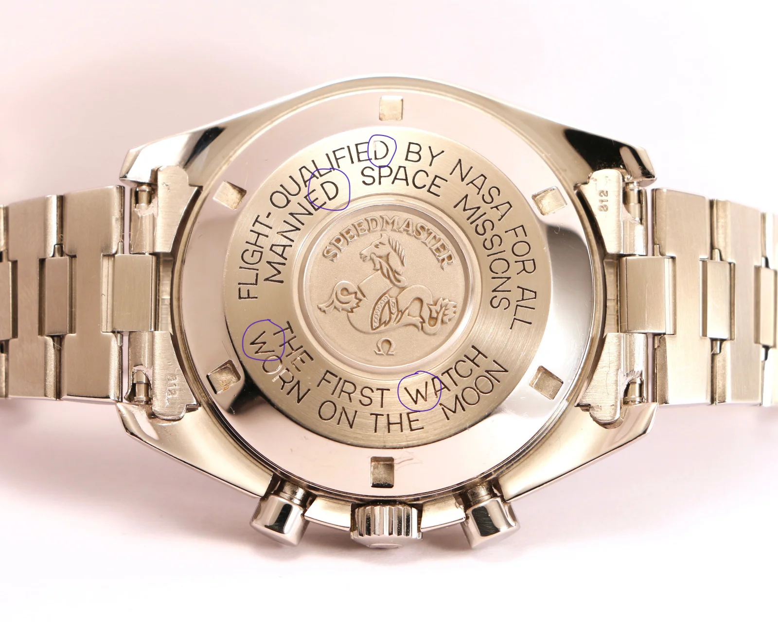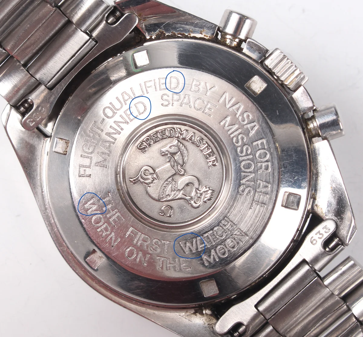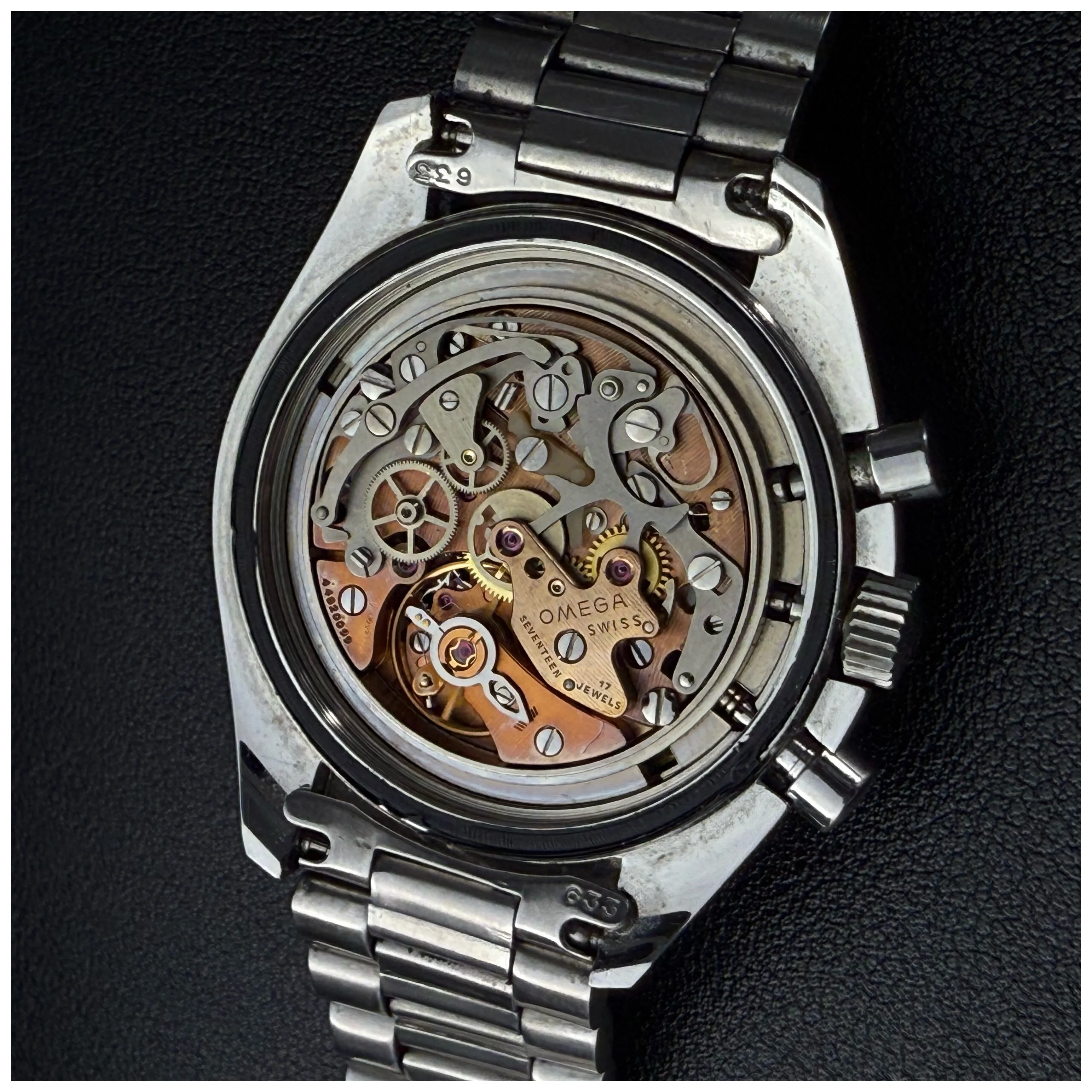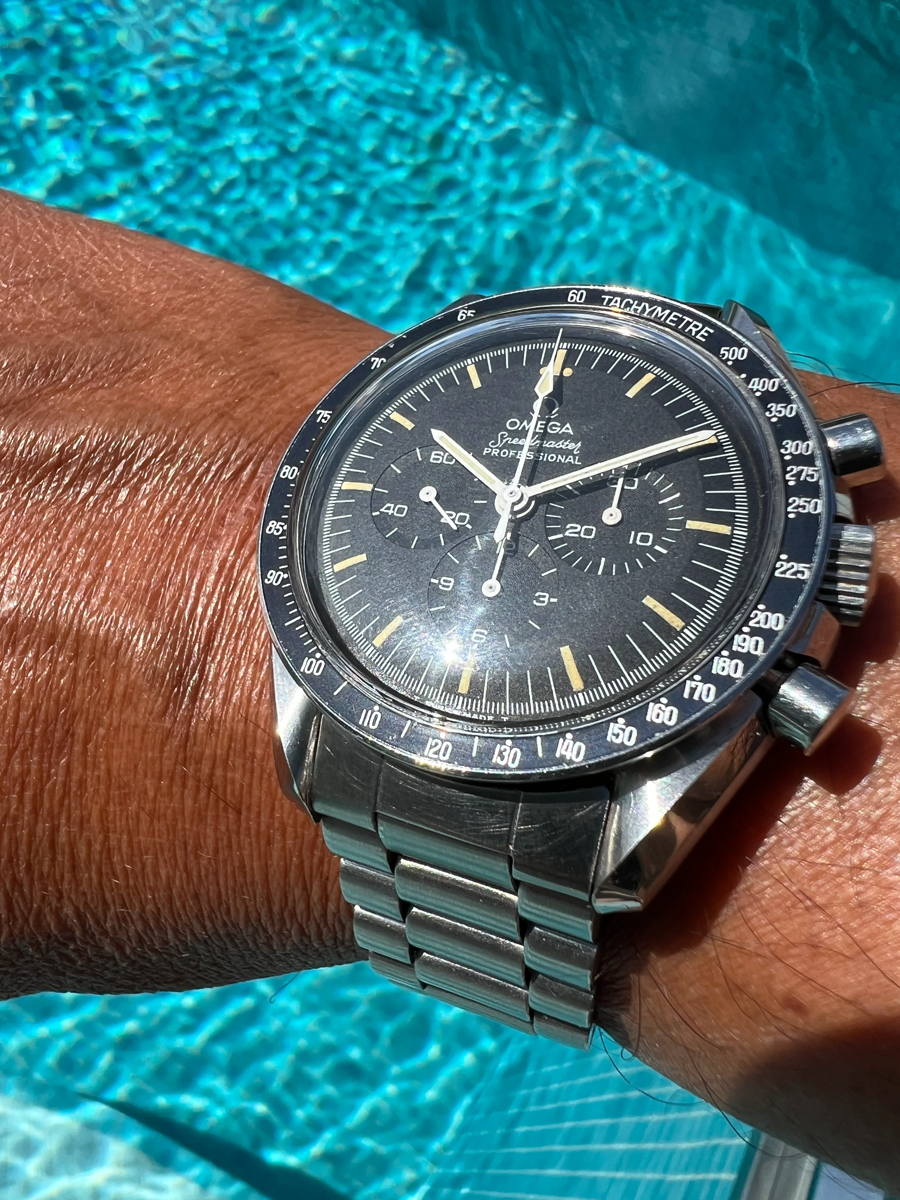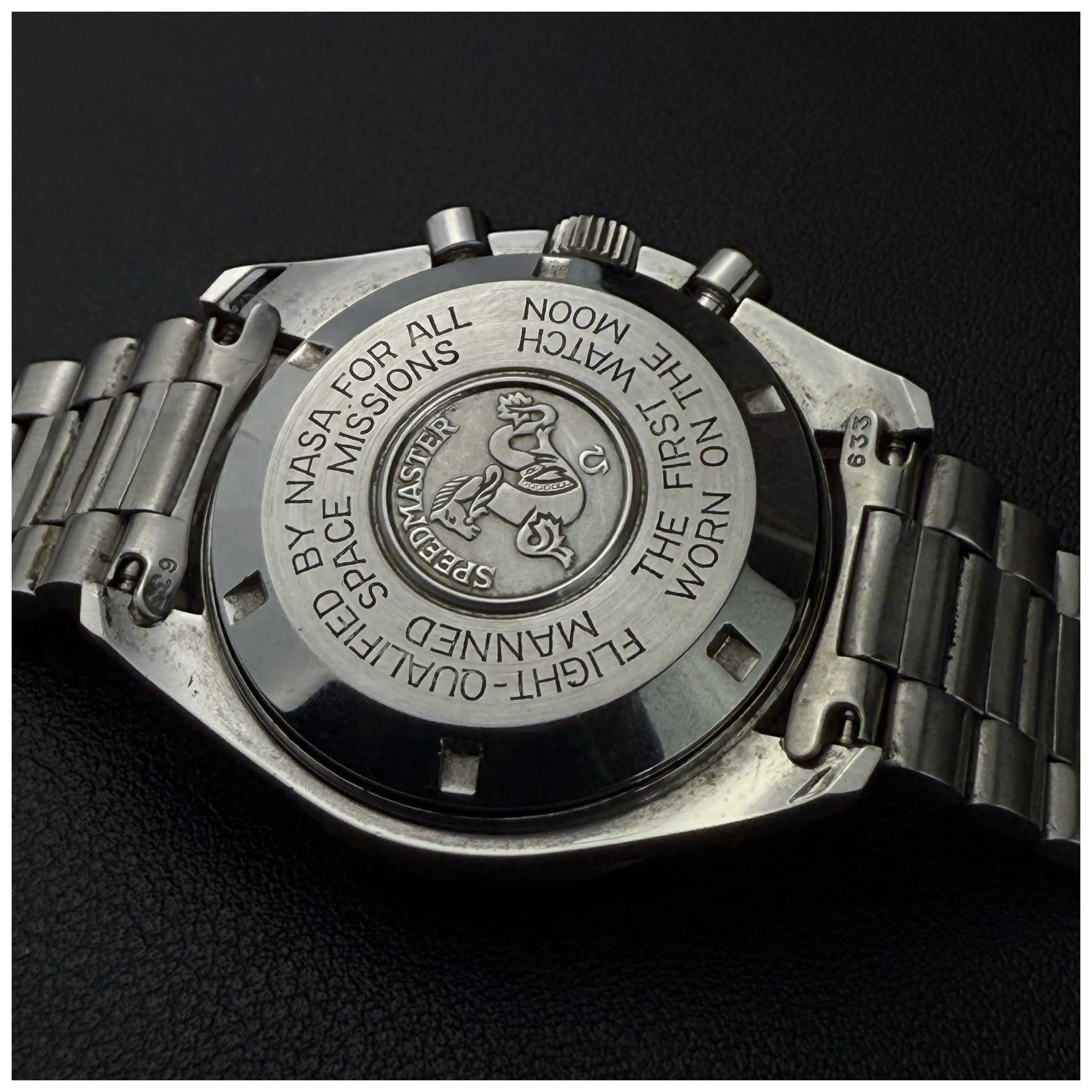 Apart from the nice dial, the case is what stands out to me and could be a giveaway regarding the reference. Given how sharp the case is and the fact that there are some points of wear, I am going to assume our quiz watch isn't polished and if it has been, it has been done very lightly. When one compares the 'feet' of the lugs (where the case lugs on the wrist) of the quiz watch case with the 145.022-78 shown above, it stands out that the surface area of the feet of the lugs is bigger (wider) on a 145.022-78. I can confirm one of my own 145.022-78's has the same, the case of a -78 seems a bit more beefy. So, I am inclined to believe this isn't a -78 but a -76. Note that it is pretty difficult to identify a 70s / 80s Speedy by its case profile with such poor side pictures.