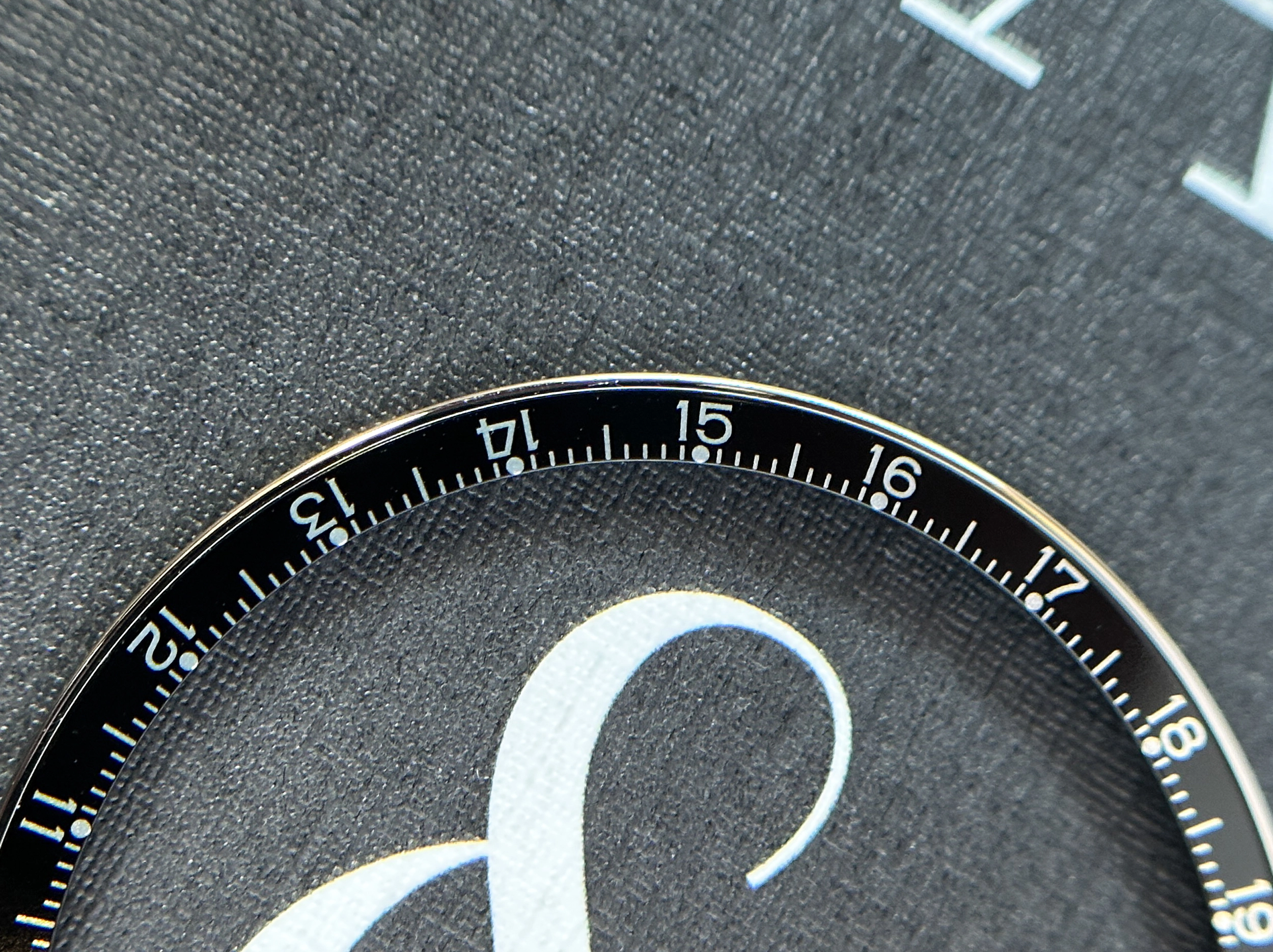 I ordered this bezel new/unopened for a specific project, proceeded to open the packaging, and upon holding the bezel for the first time, decided to retain it for a different project. It has never been mounted to a case, so the condition remains like new and unused. Just open packaging. If you see anything on the bezel in the photographs, it is just dust.