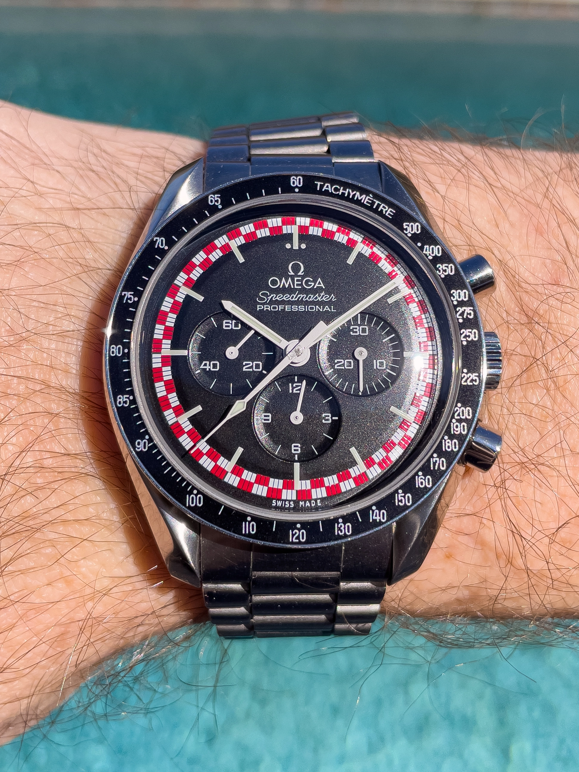 This came off my 1861 Speedmaster that I had modded using a TinTin dial. I alternated between using this caseback and a sapphire caseback until I eventually found a new/sealed TinTin caseback and relegated this one to storage. There are a few slip marks on the outer polished surfaces, as shown in the pics below, along with superficial wear marks from repeated wear. That said, the caseback is in good condition and ready to be used.