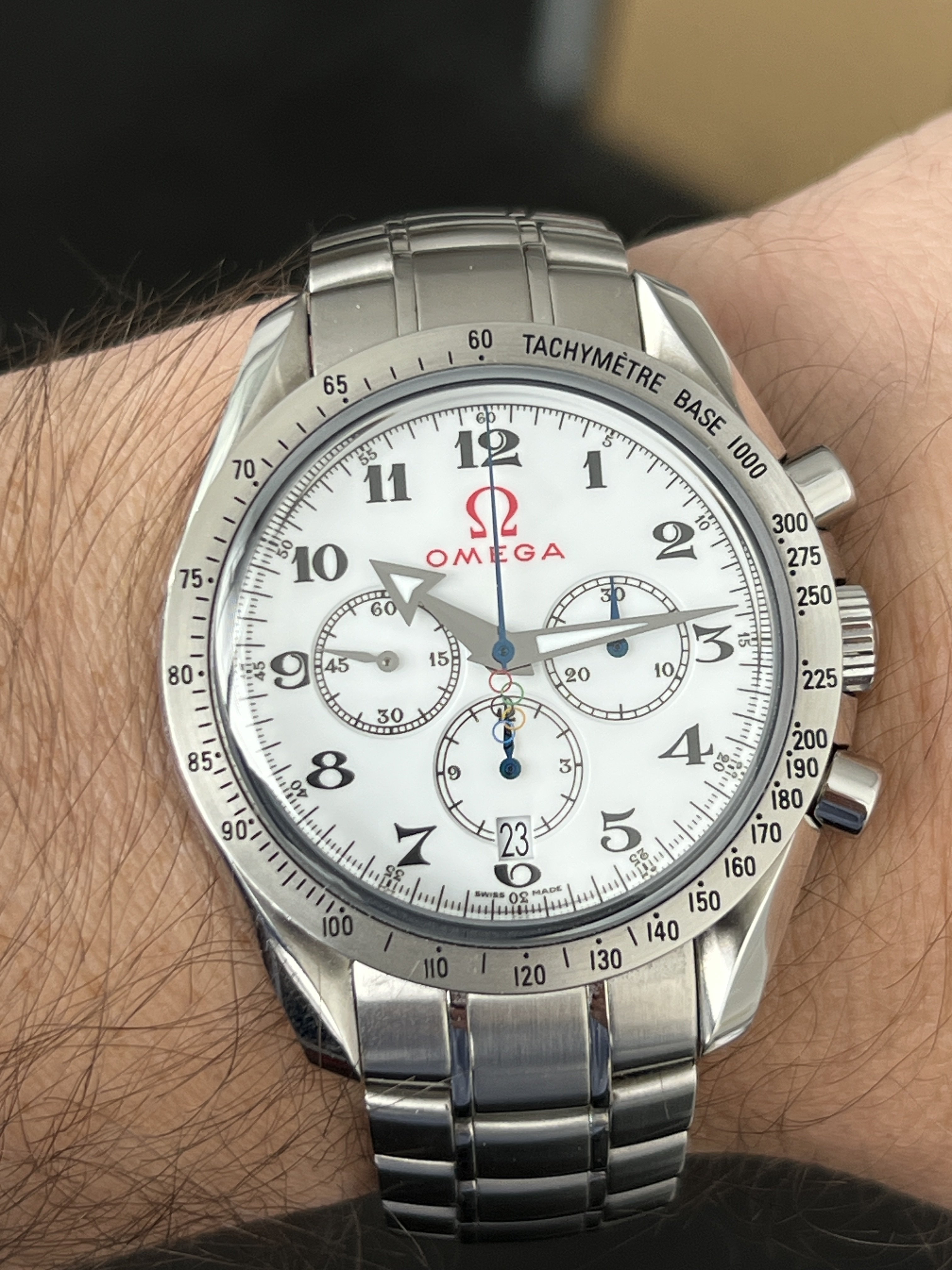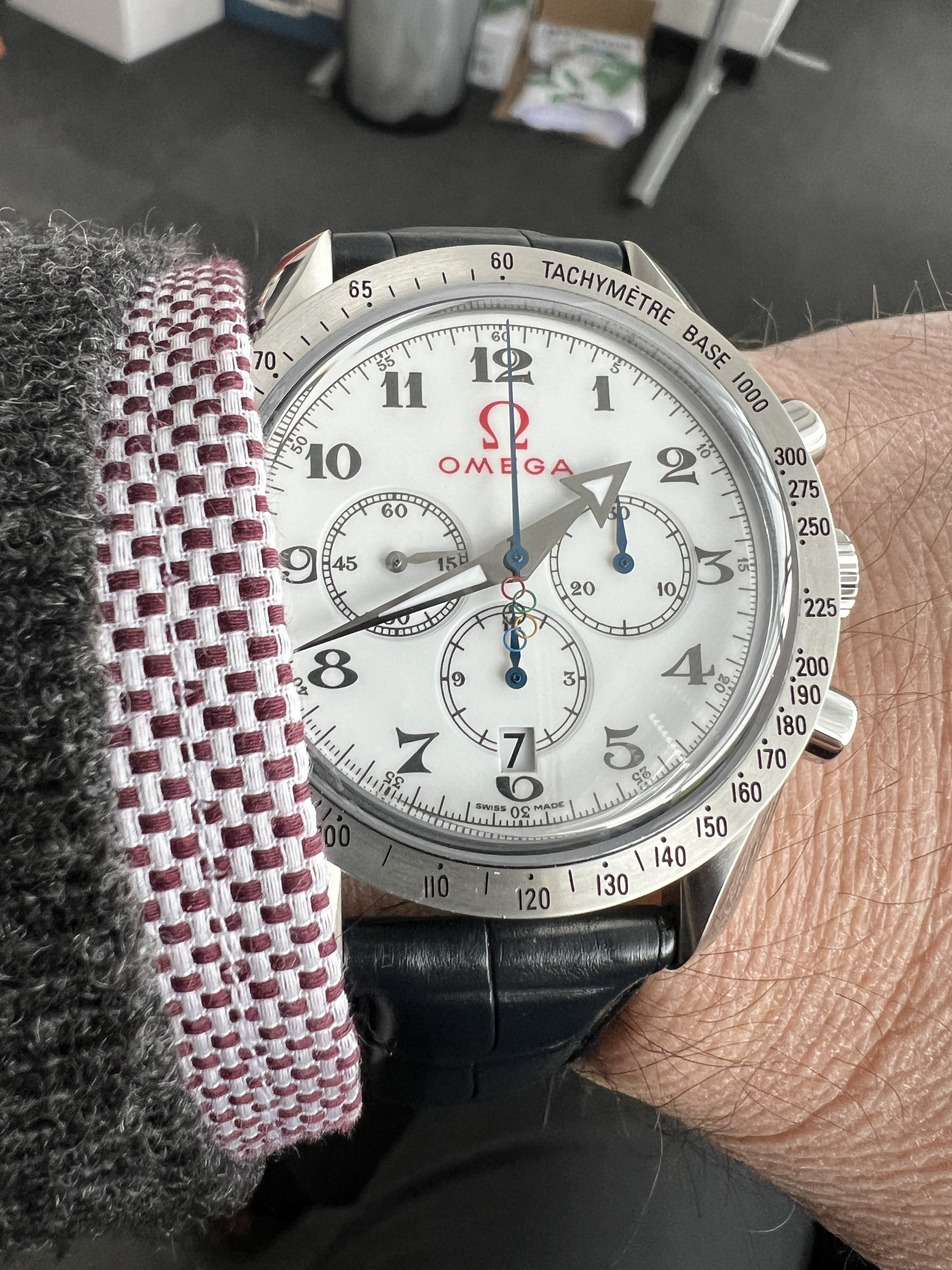 This was one of several Olympic tie ins that Omega released around 10-20 years ago, milking their long history of timekeeping for such sporting events. This model dates to circa 2012 and was I think launched just before the London Olympics. It's hard to be sure since I've looked hard but can't find a press release for it. My own example was sold much later than this suggesting it didn't exactly fly out of the showrooms, that and the fact I've never previously see one in the wild is also suggestive that wasn't a quick seller.