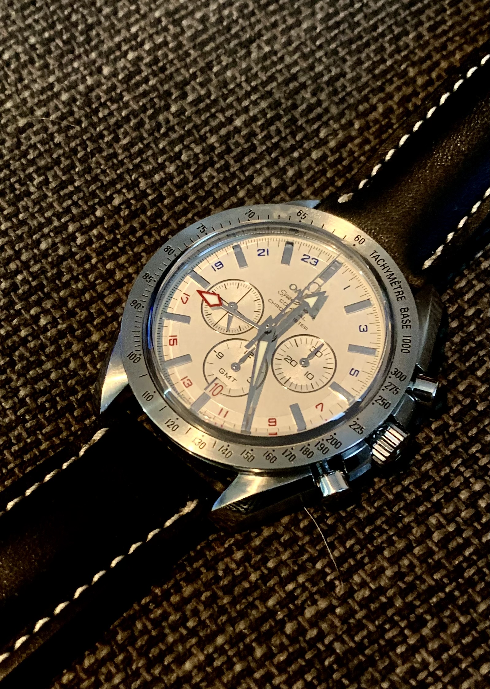 ยทJust recently bought this cream dial Omega Speedmaster Co-Axial Broad Arrow GMT and I am very satisfied with it. The dial looks very good and the watch size (42,2mm) is perfect to my wrist.