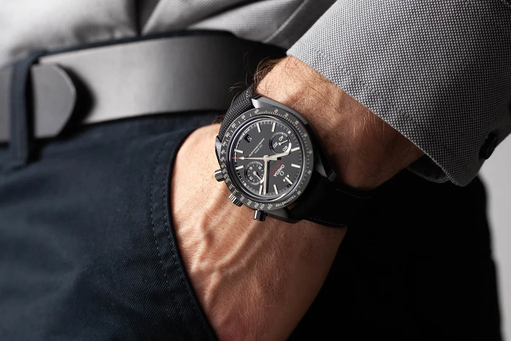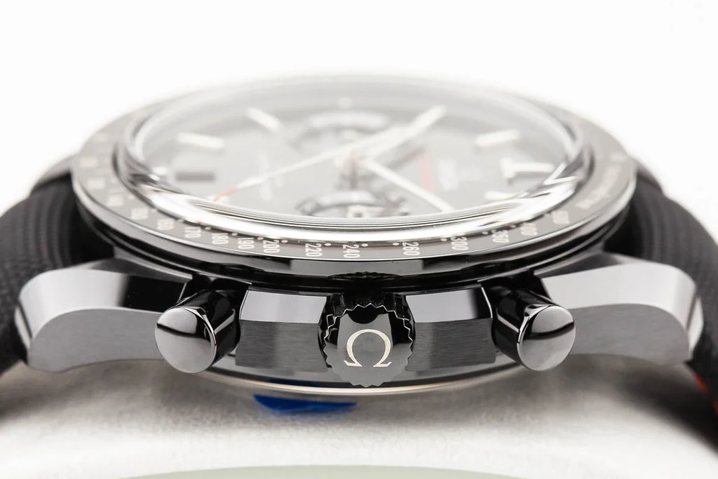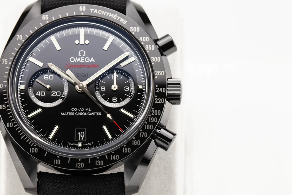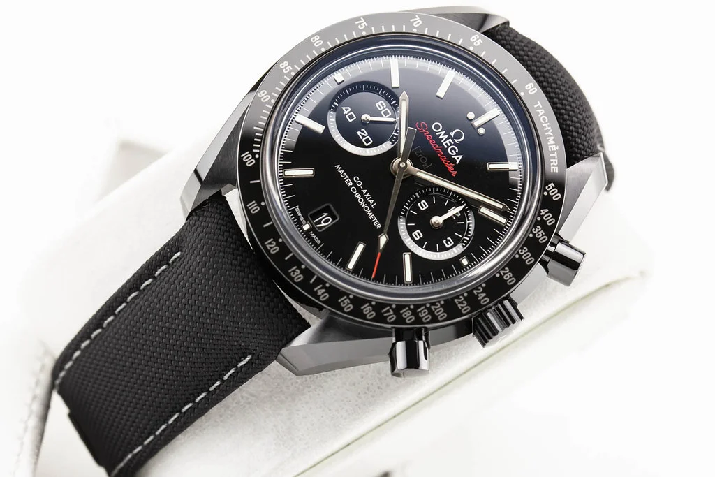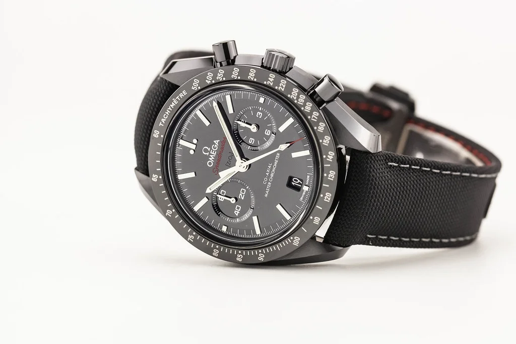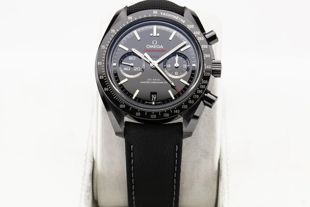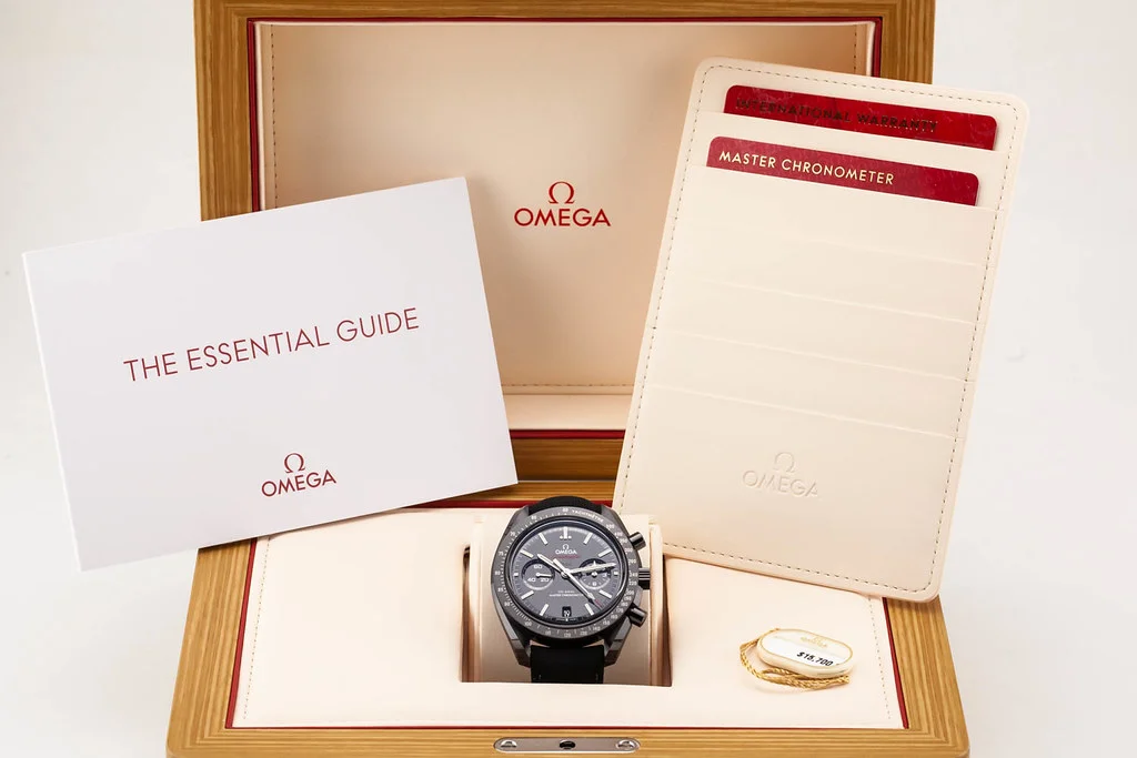 ยทUp for sale is a brand new Omega Speedmaster Moonwatch Dark Side of the Moon / DSOM on Nylon Fabric Strap with Ceramic Clasp, reference # 310.92.44.51.01.002 It comes complete with all boxes, papers, booklets, hang tag and Omega Warranty Card dated October 2025.