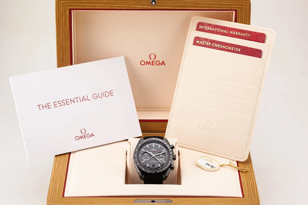 ยทUp for sale is a brand new Omega Speedmaster Moonwatch Dark Side of the Moon / DSOM on Rubber Strap with Ceramic Clasp, reference # 310.92.44.51.01.004 It comes complete with all boxes, papers, booklets, hang tag and Omega Warranty Card dated October 2025.