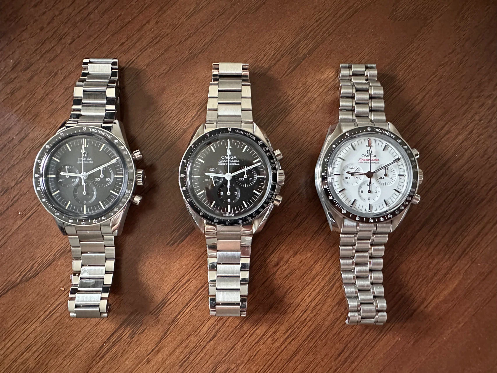 The standard moonwatch wears a bit better with it's slightly shorter lug-to-lug distance, thinner case and the additional crown guard actually makes it more balanced on the wrist. The Ed White wears taller, the movement is technically inferior to the 3861 and I personally prefer the Nixon bracelet with smaller links and on-the-fly adjustment clasp on the 3861 moonwatch.