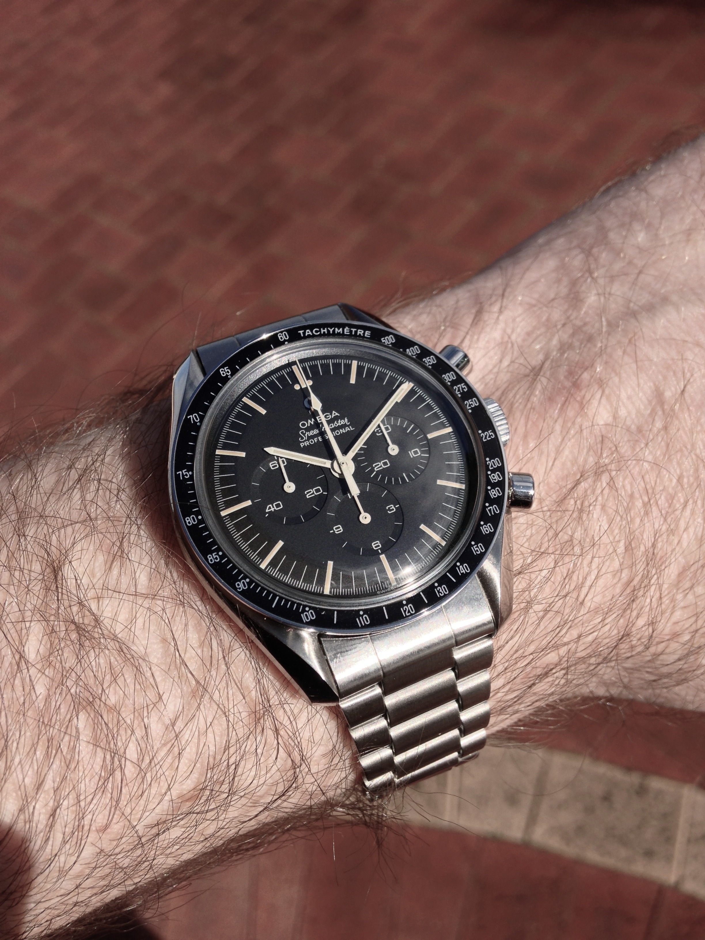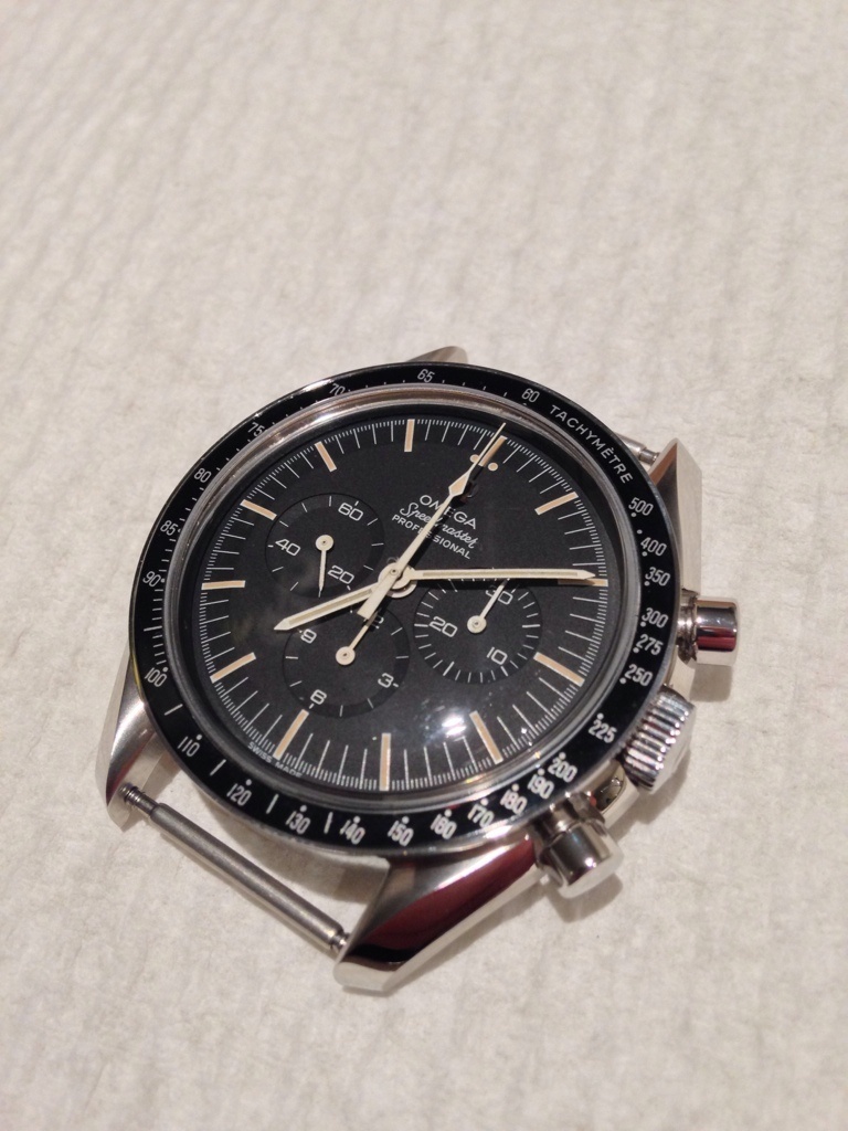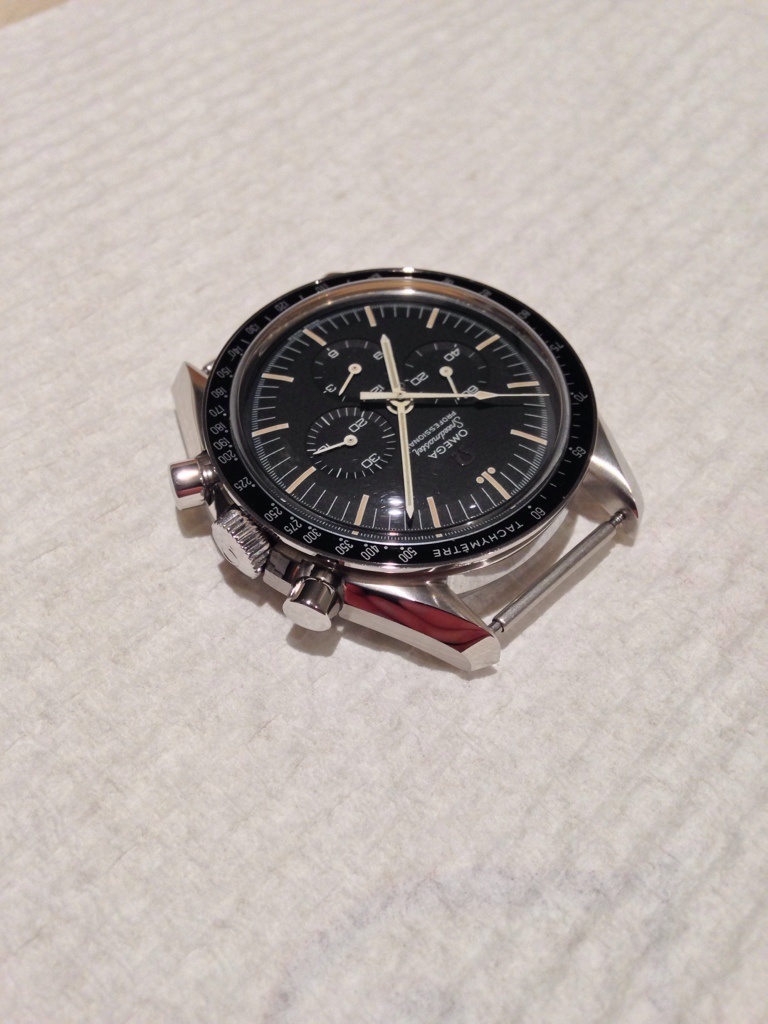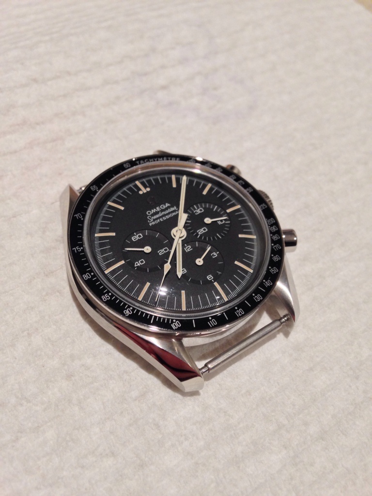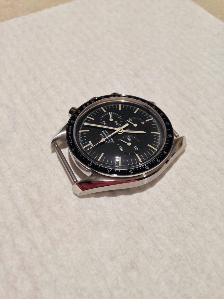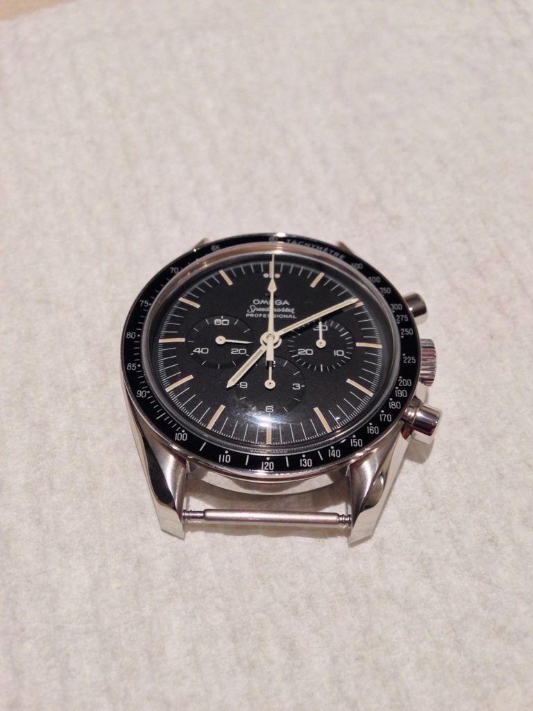 Selling the raised logo "transitional" Speedmaster I built recently. This has a brown dial and matching hands - the patina is manufactured and stable, still glowing at night. I have built it to look like the first of the Cal. 861 moon watches and as such it has a raised logo dial and the pre moon case back.