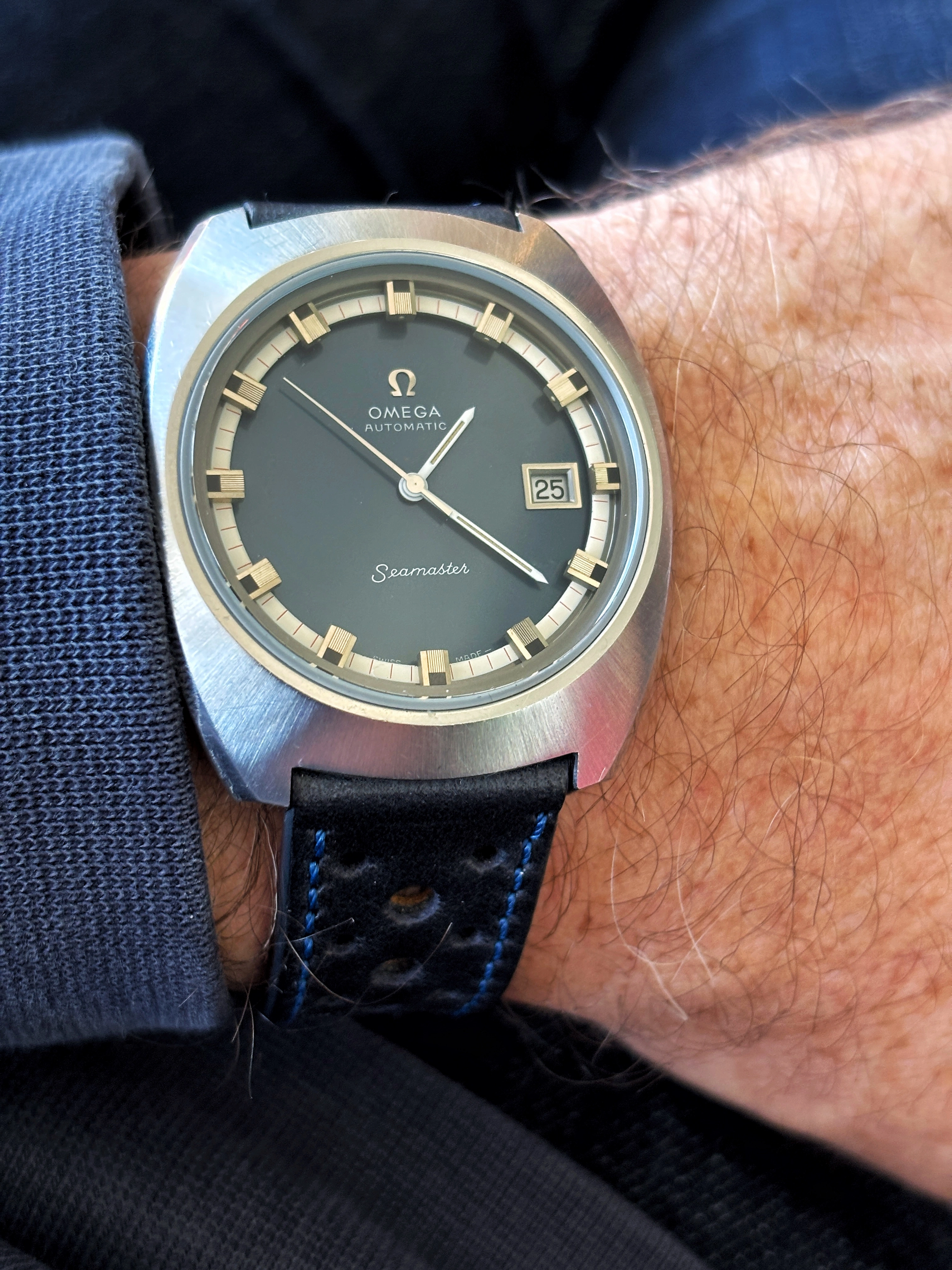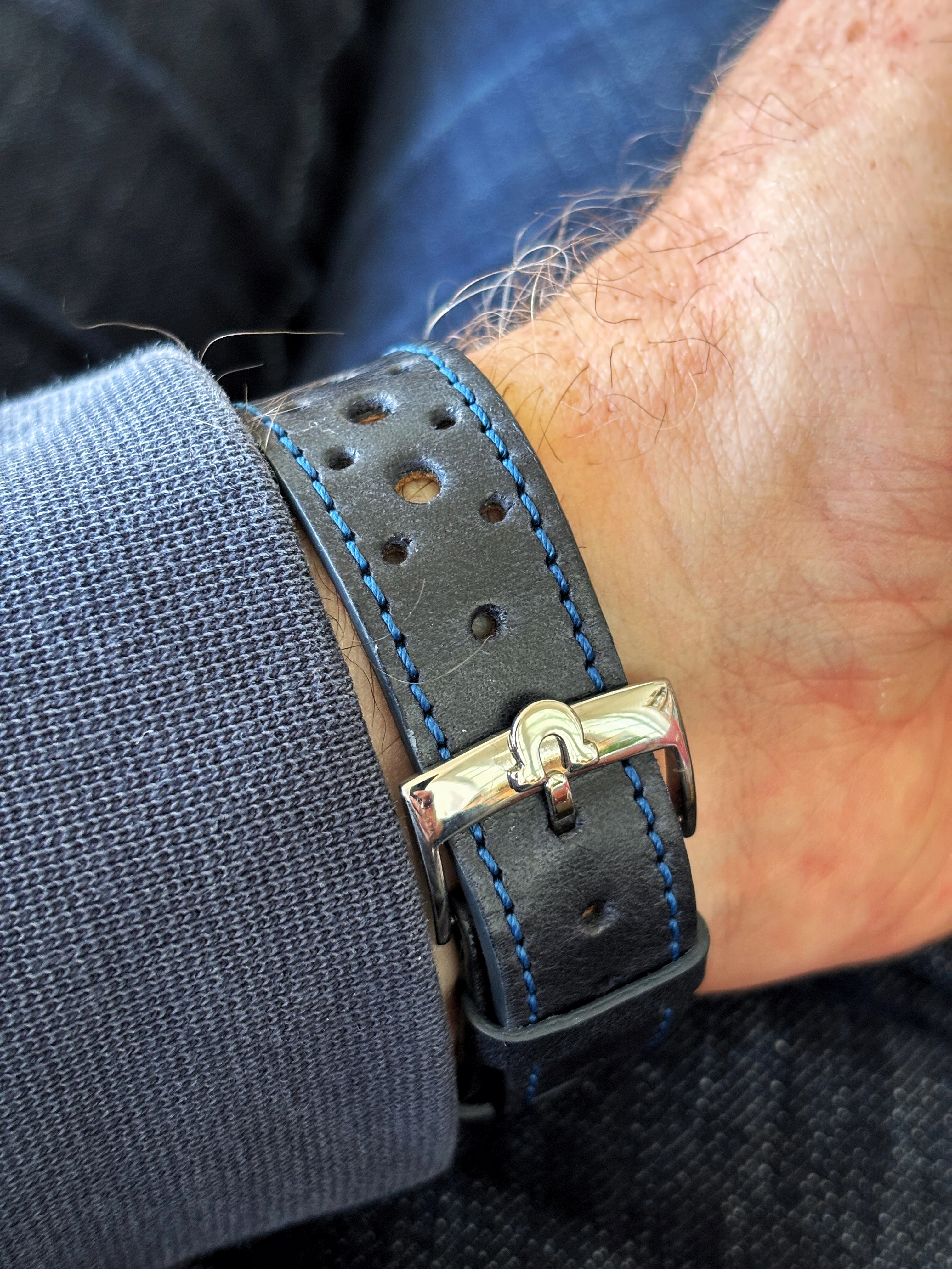 I currently have a fake buckle on a rally strap and although it does the job it irritates me that it's not original. Would also be open to an Omega strap/buckle combo but doubt anyone has a blue one.