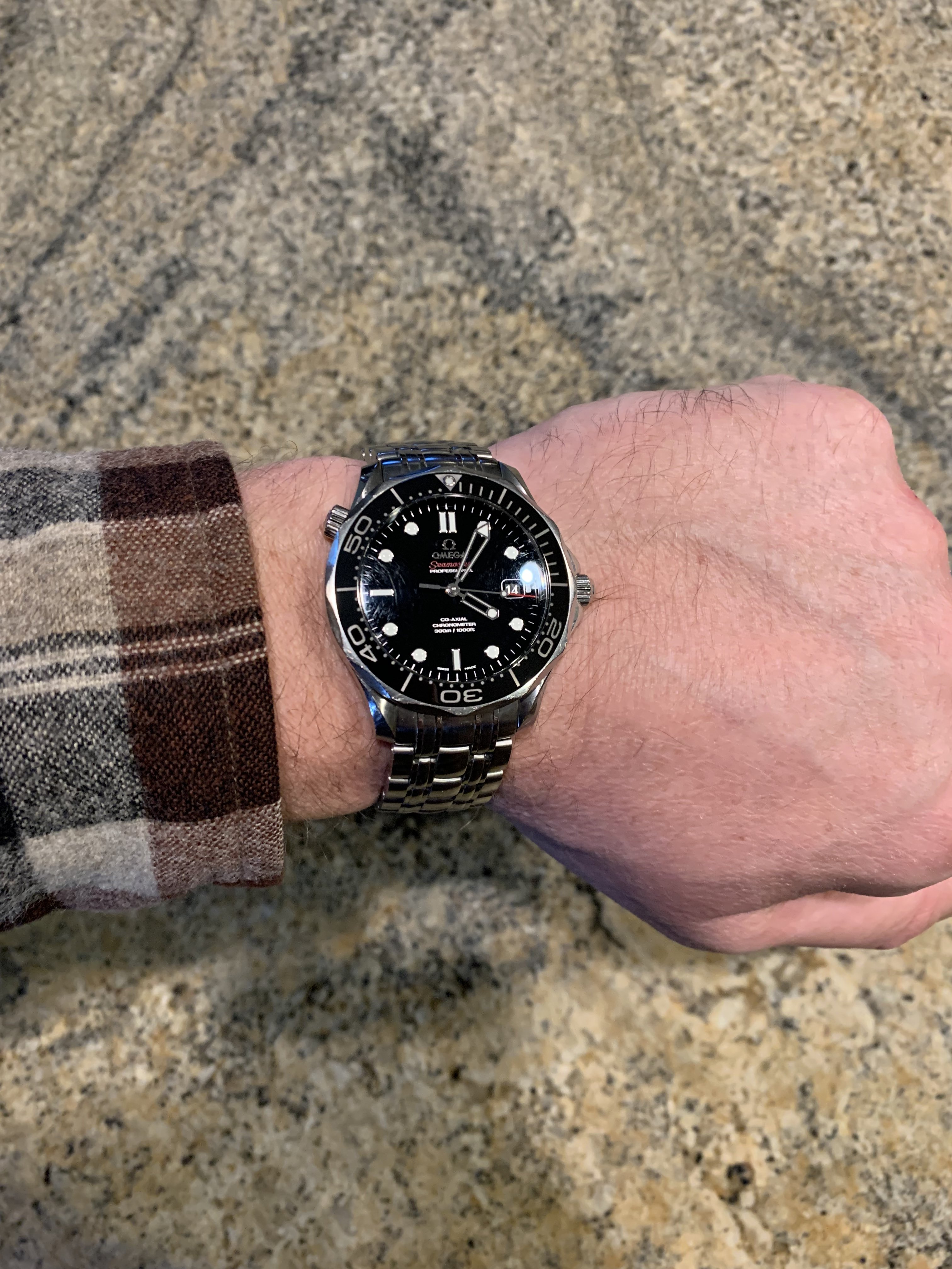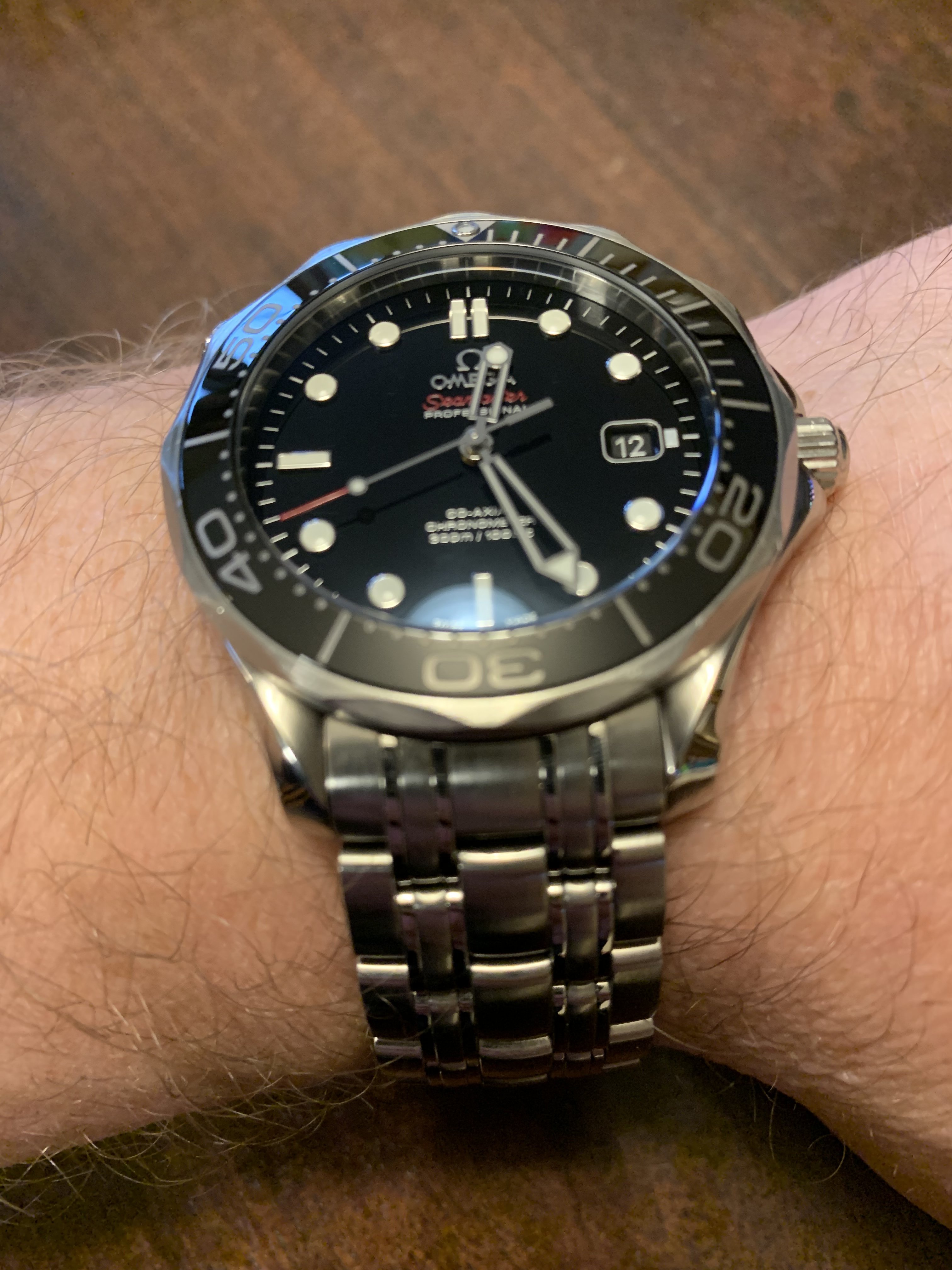While I agree that the trend toward thicker and larger cases in many watches is not attractive, I have to say that I think that the third generation of the SMPc is the design pinnacle for this model - at least so far. In my view, the watch is just about perfect. 41mm is just the right size for a diver - not too small to read and not large enough to wear like a dinner plate (see the current version for that). The case isn't too thick at 13mm thanks to the caliber 2500 and I actually prefer that beautiful glossy ceramic dial with the applied logo and hour markers in white gold to any version of the wave dial. On the third generation, instead of the ridiculous display case back that's on the current version (who needs a display case back on a dive watch?), you have a proper solid case back with a very large hippocampus engraving with the waves. It's gorgeous. I agree that Omega should not have used a black date wheel on the blue dialed version, but since I have the black dialed version it's not an issue for me. While I concede that the current model offers the most advanced movement for this watch, the three level co-axial caliber 2500D in the third generation is no slouch. Mine runs consistently at +/- 1 SPD and has done so for years. The third generation is probably the best looking dress diver on the market and it was and is a bargain. You can still pick up used examples in very good to excellent condition for around $3k. It's a steal for the price.