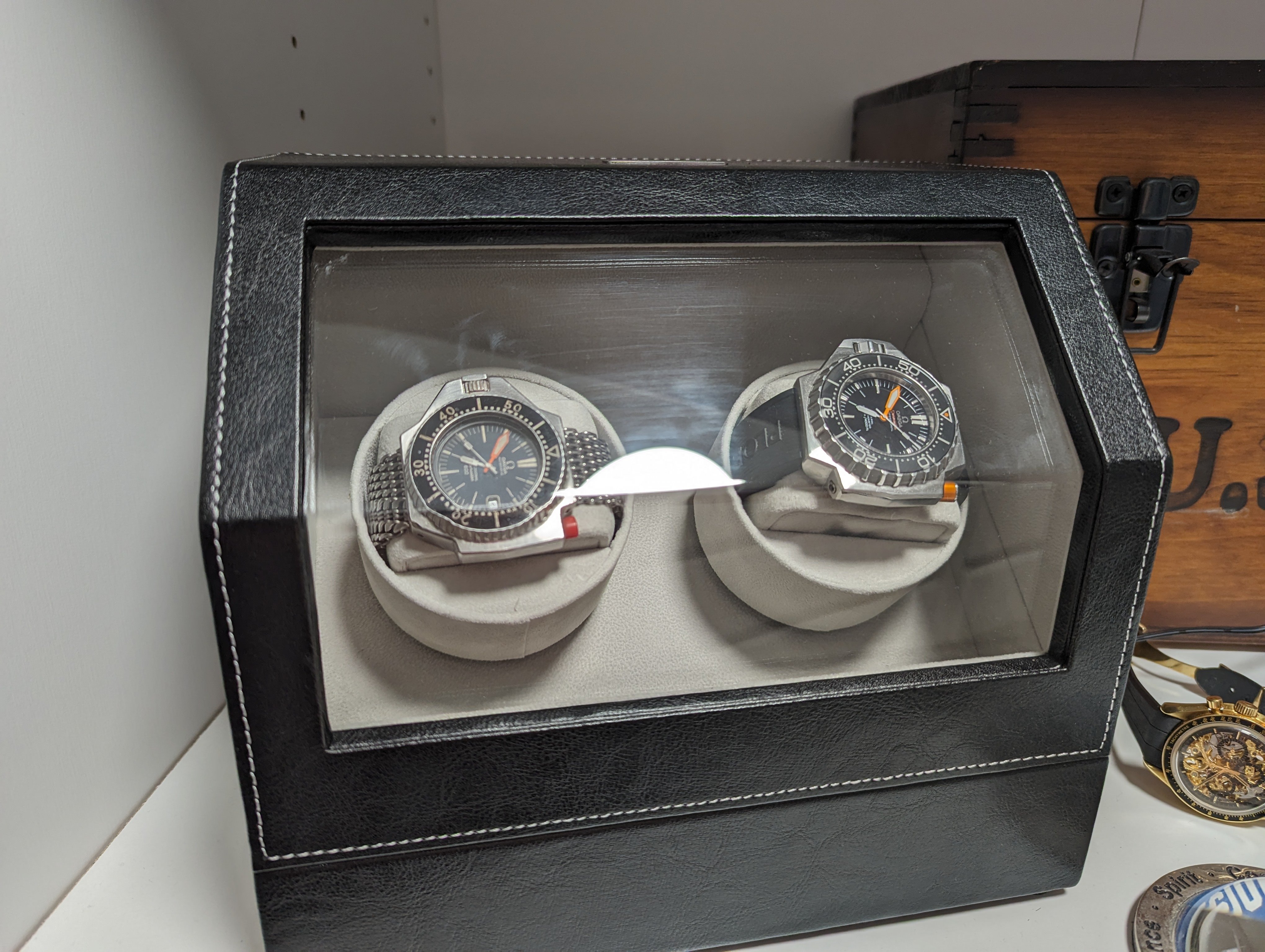When I retired and was ready to buy my Speedmaster, I asked my brother if he was also interested in getting one, as I was able to get a discount from the PX, (back in the day when you could get a discount). He said yes, and those were our first Omegas. While I got heavily into watches, he was happy with his two, the Speedmaster and a later Seamaster chronograph. Then one day we stopped by my friend's shop to say hello. When my brother saw the Ploprof, he was smitten. It was almost electric. He had to have that watch.