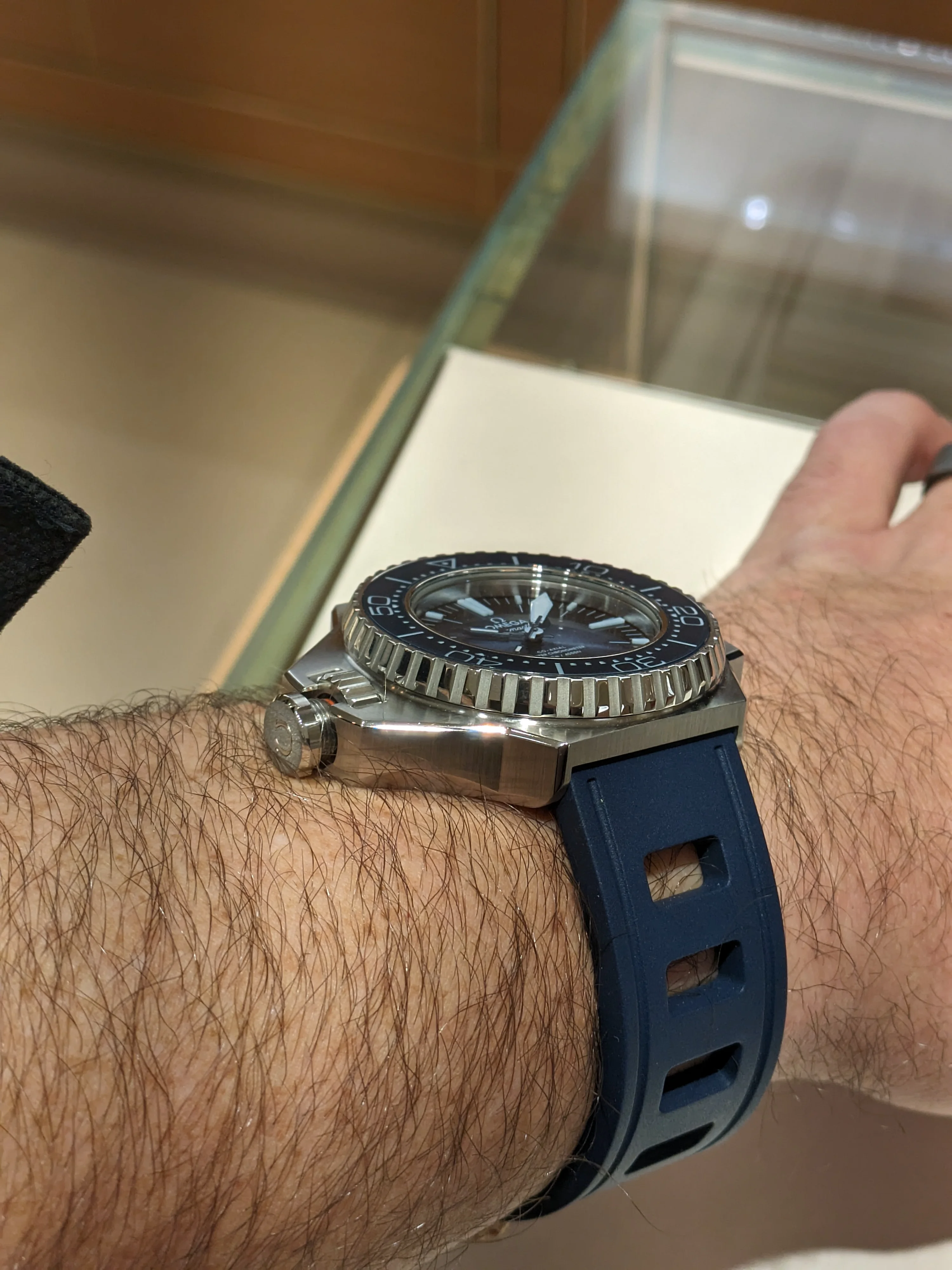 The woman was with her husband who was looking at Panerai and Bell and Ross watches. My buddy showed him the Ploprof and his wife was smitten. She bought the Ploprof for herself.