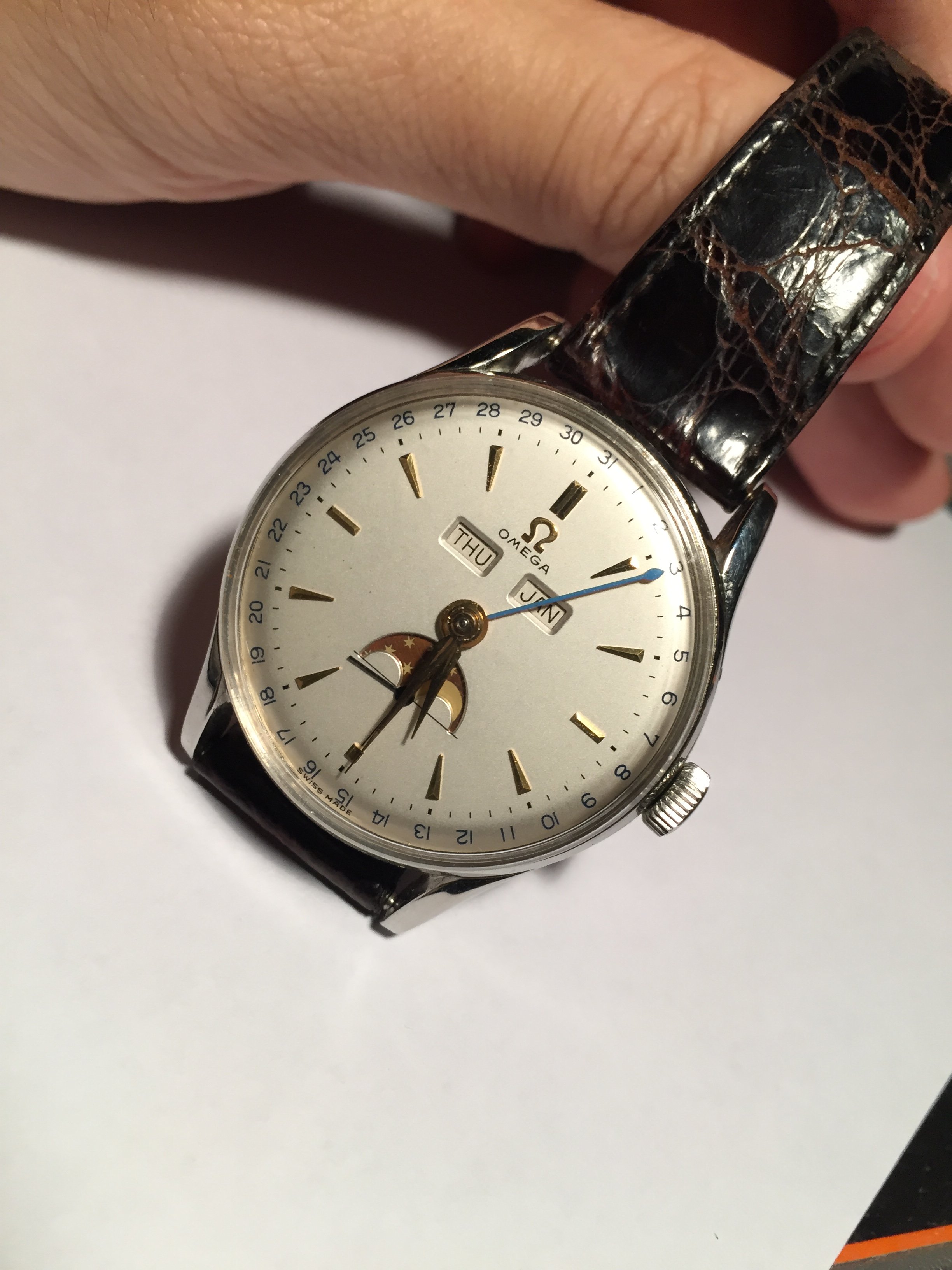 This is my first post here after being a very long term lurker. Triple date moonphase watch of any model either vintage or modern is always been interesting for me. Few months back just before moving to EU for a job assignment, I was offered this omega TDMP and it was such an impulse buy to get my first TDMP watches. Please let me know what do you think of it. I was thinking that the dial may be repainted and the crown is not correct. The dial even though the date is blue however it has darker shade compare to the pointer hand. The movement however is quite clean. I have with me as well the bill when the watch was bought from a reputable vintage dealer in Singapore however this to me does not a guarantee that it is fully originals. Thanks guys... and nice to be here finally. Sherwin