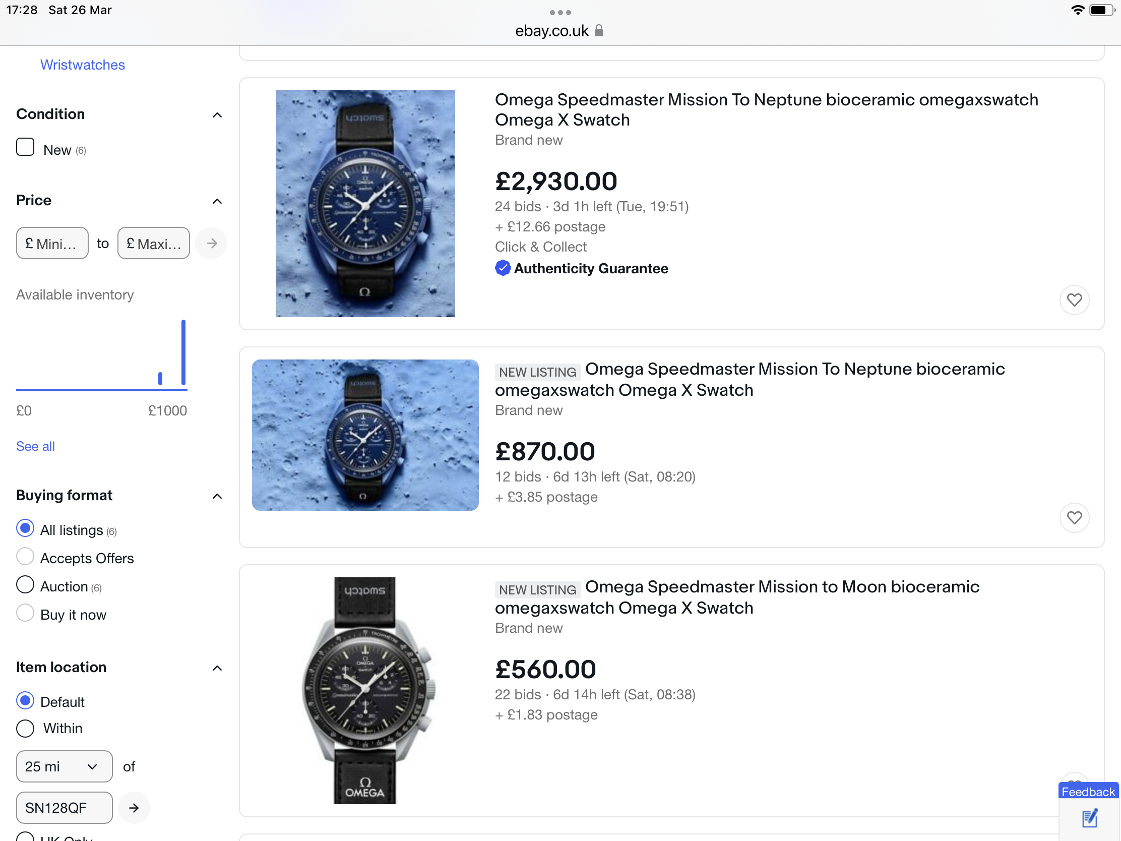 Outrageous behaviour…don’t know if I should feel smug or embarrassed to have a proper speedy on my wrist just now. Surely these are false bids on eBay…surely