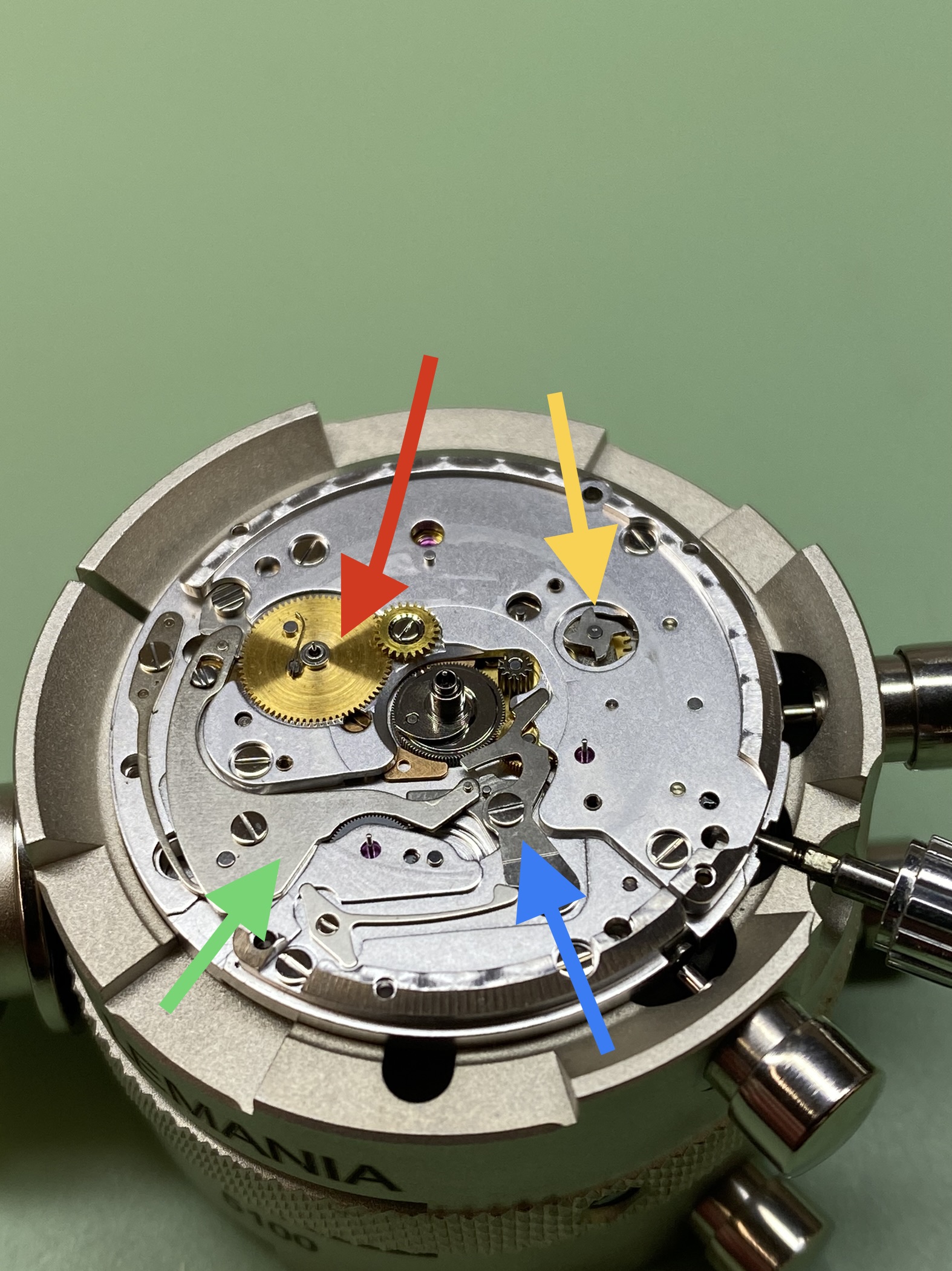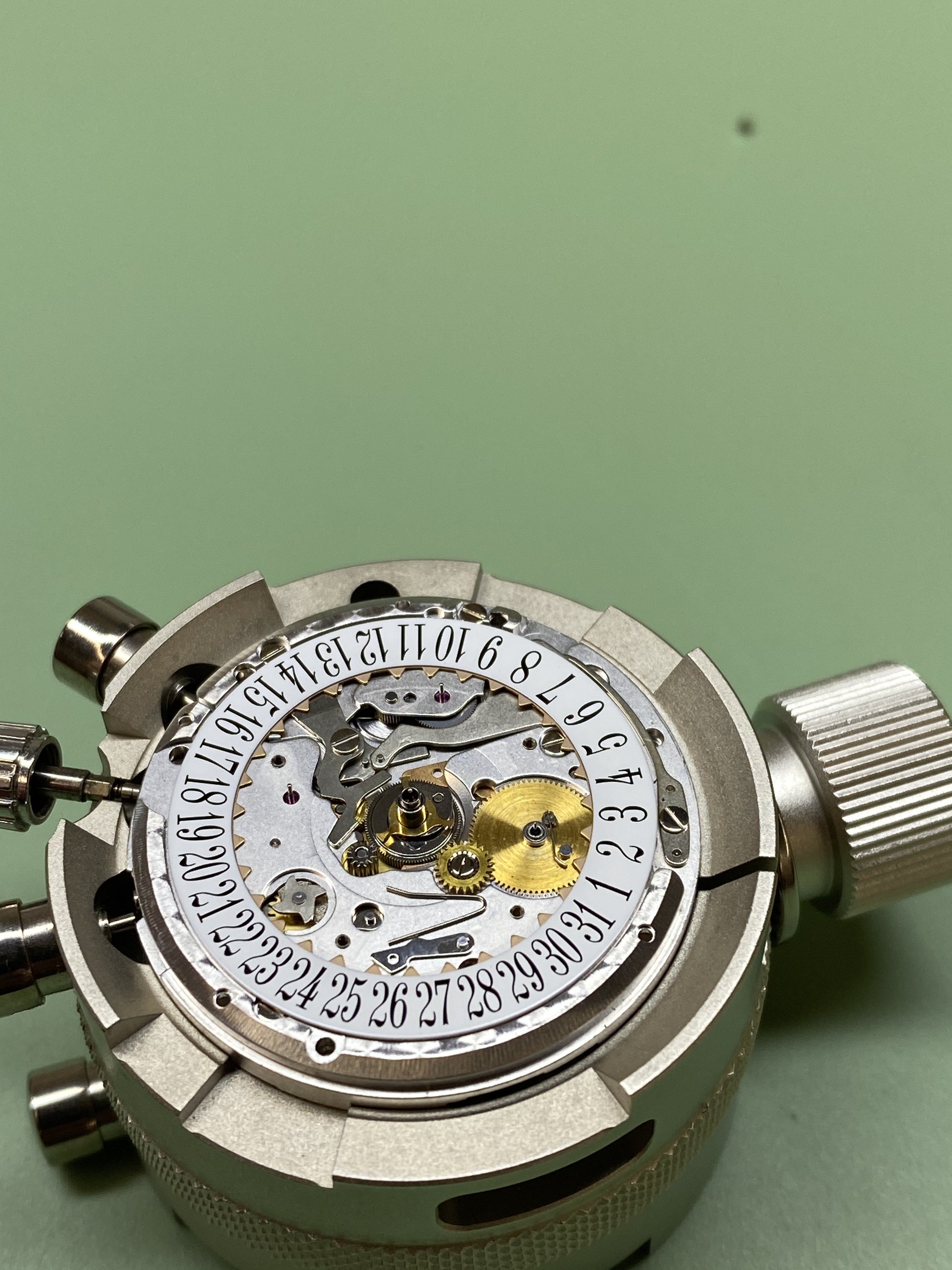 movement de-cased and in the movement holder.