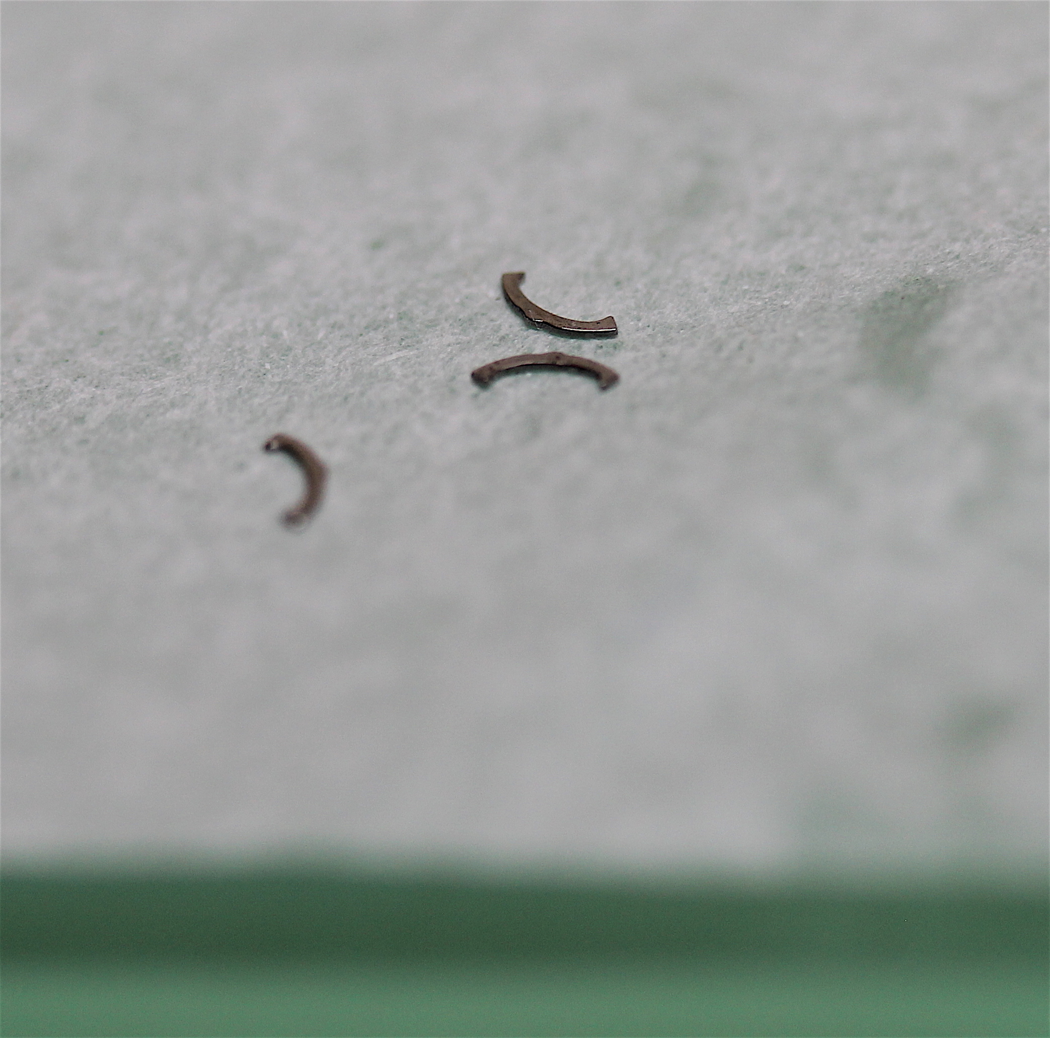 Lubricating was an experiment, mainly for the three little pawl fingers. I used a pegwood stick just damp with Moebius 9010 and wiped the inside of the barrel, then I wiped the oil onto a sheet of glass and put the fingers in the oil (turning to coat all over). Then I transferred the fingers to a sheet of watch paper to get rid of excess oil, a bit like cooking fish fingers, but much harder!