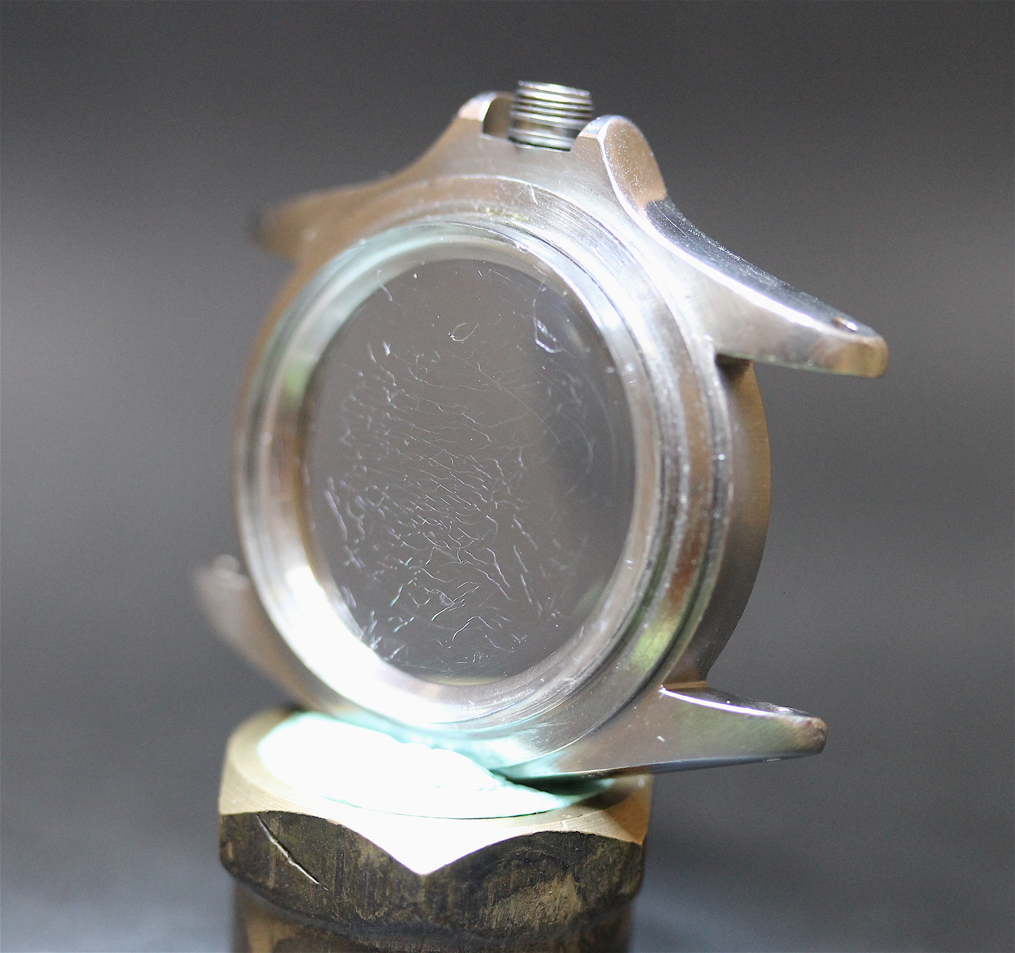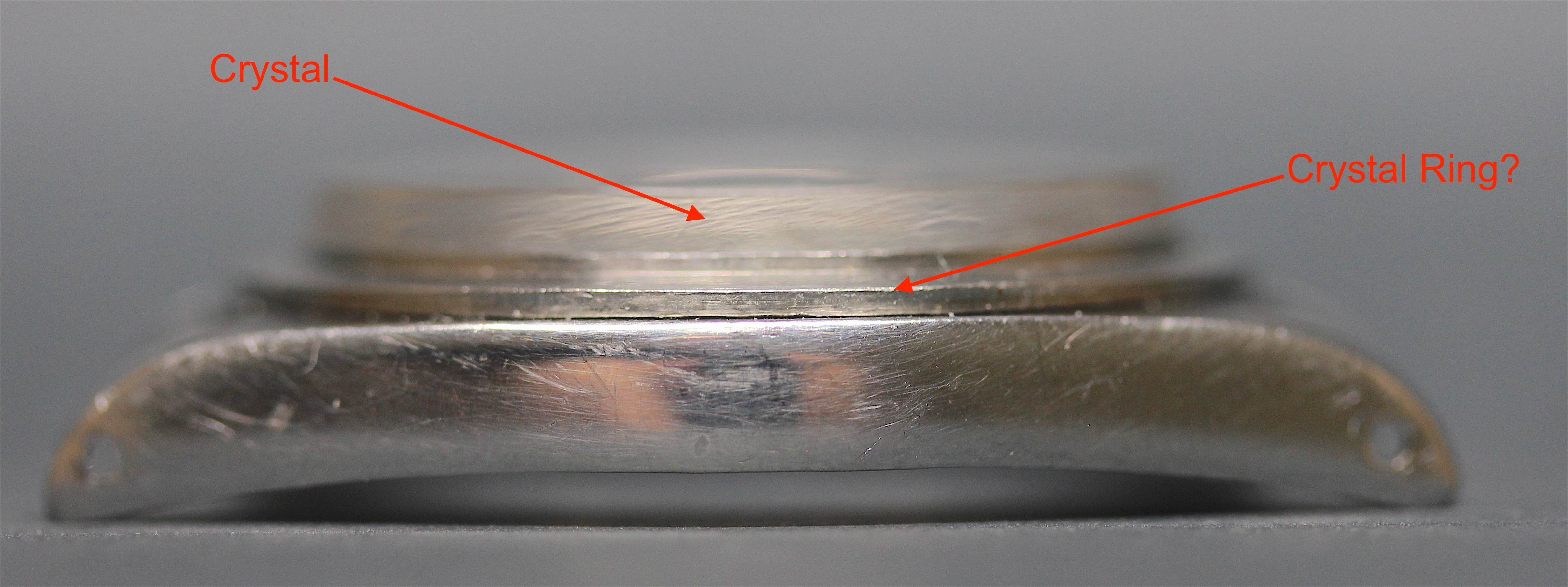 The Rolex Tropic 19 crystal is held to the case by a press-on bezel (that I called a "crystal ring).