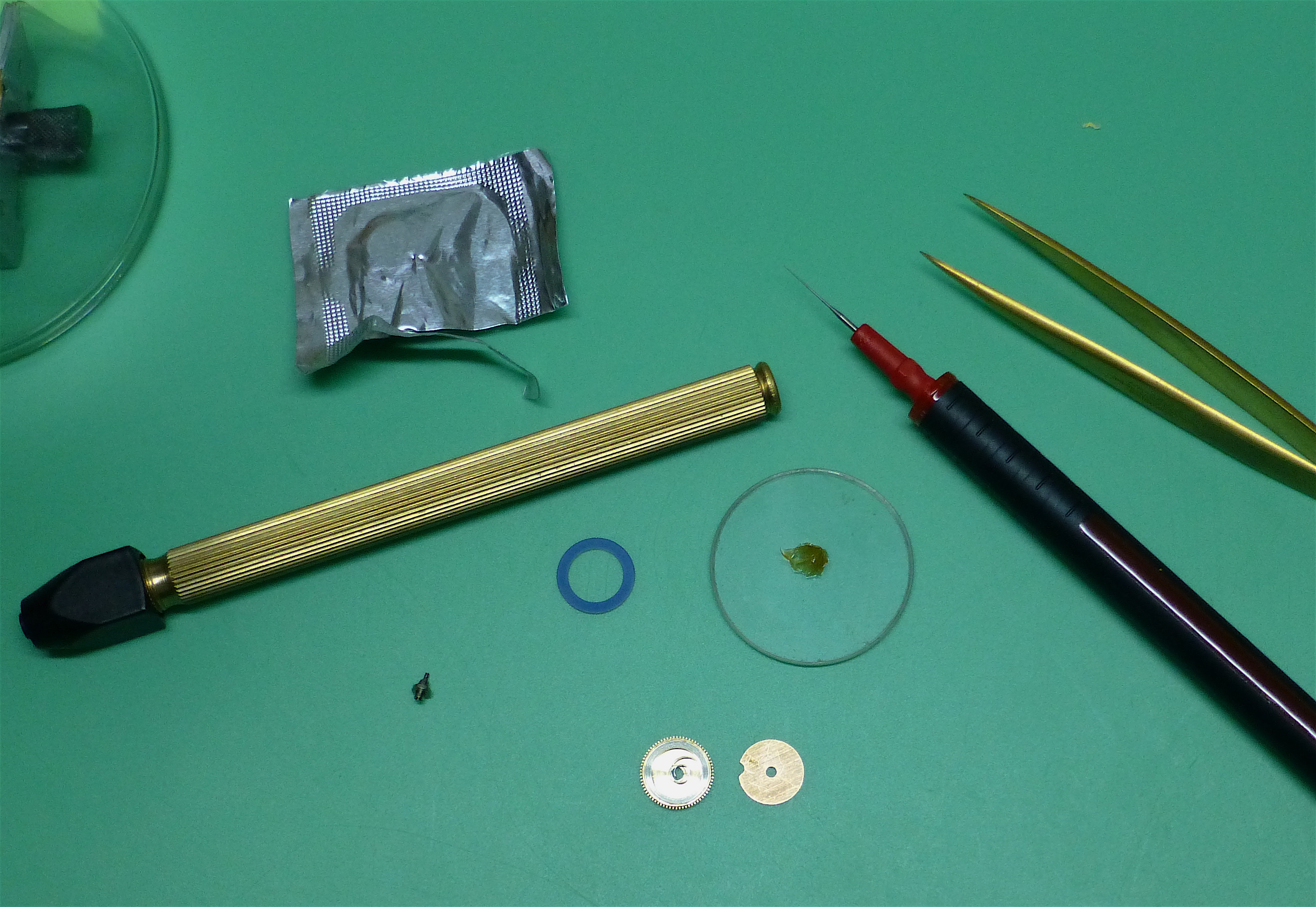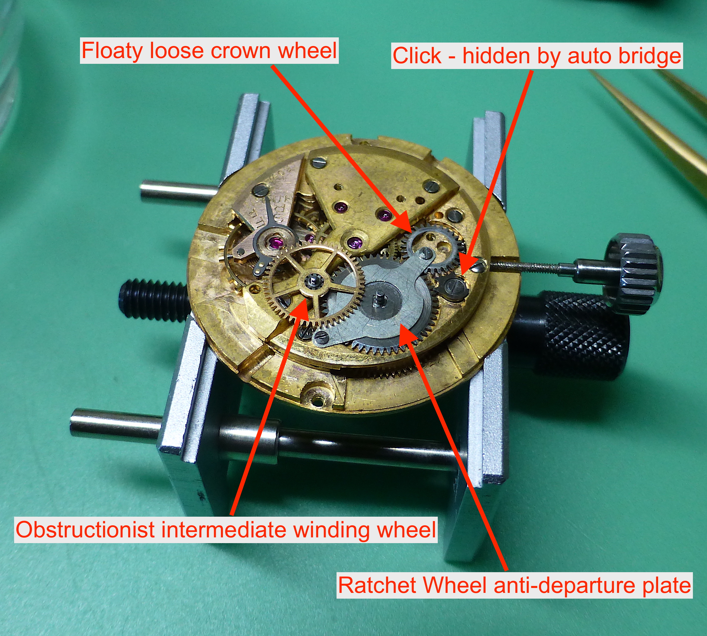 Now that the new click spring has arrived it was a quick install of the spring and fitting the auto assembly so I could wind on a little power to lubricate the pallet stone.