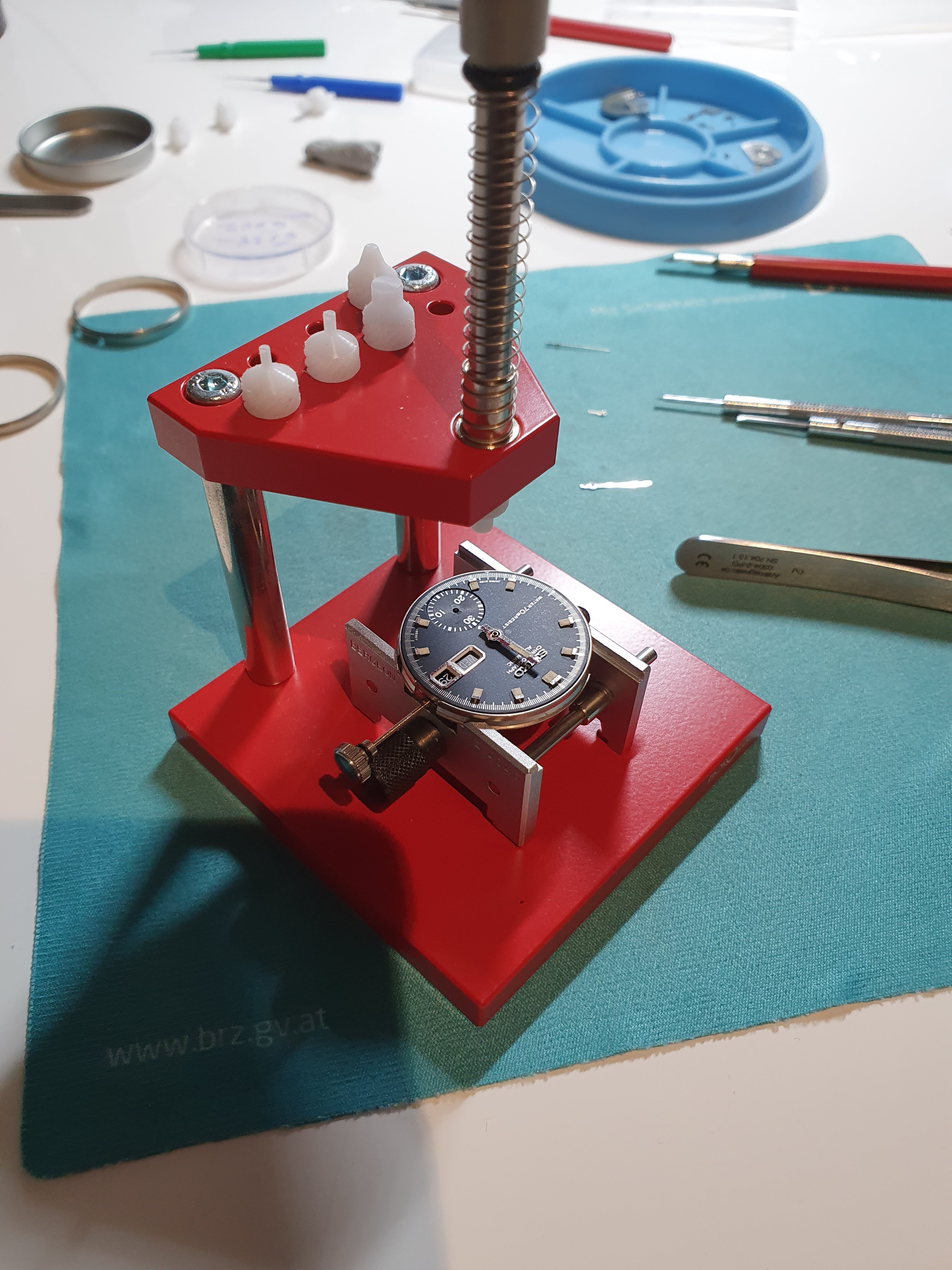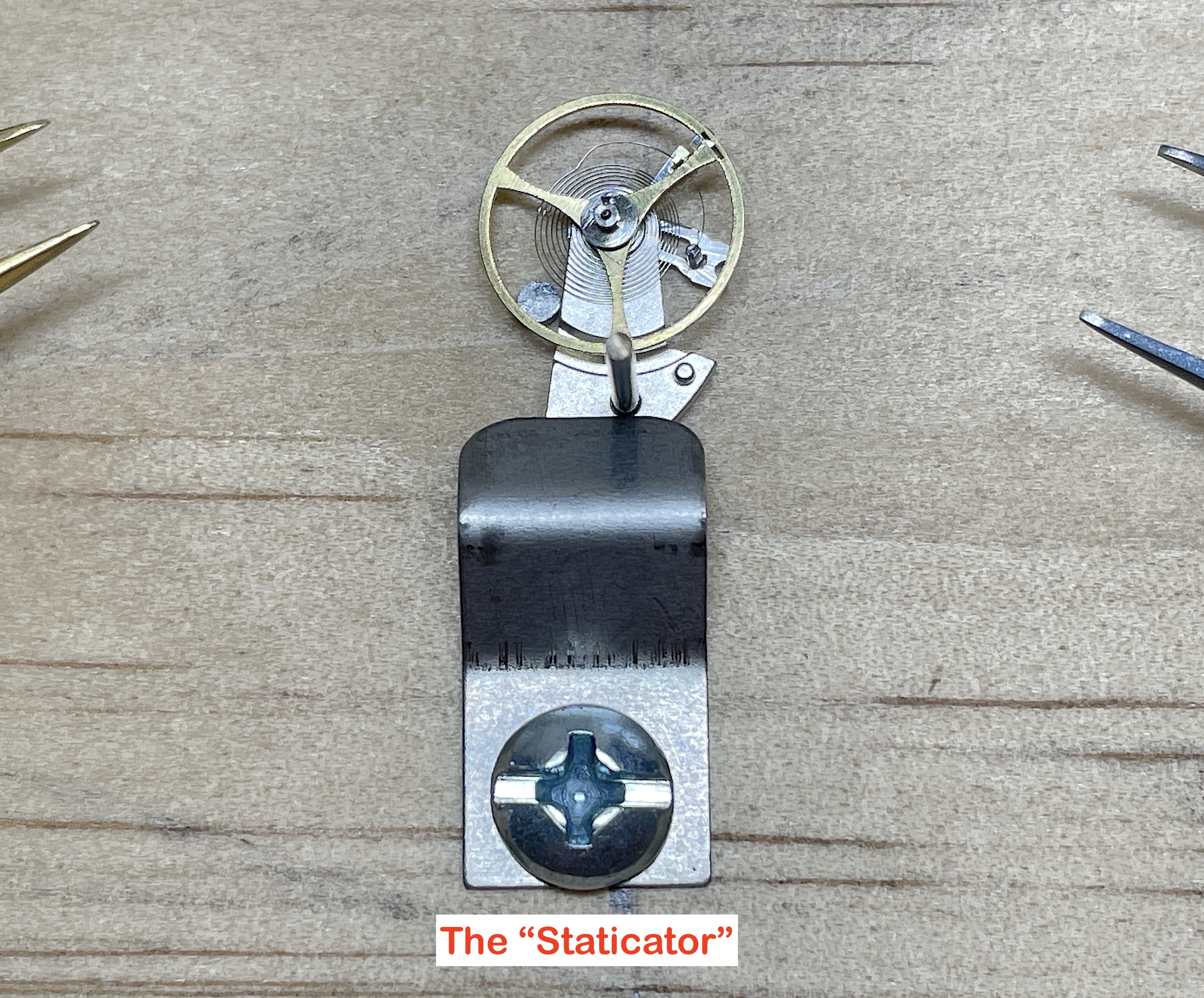 It seemed to be a simple fix, just re-attach the sud to the carrier. However! Those cunning Russkies had a special way of holding the stud in the carrier. Not content with the tried and true method of holding the stud in the carrier by a simple screw used in millions of watches, or even the ETACHRON style system used by many others, this stud is held in a split carrier, so to insert the stud, it’s necessary to (1) open the “jaws” of the carrier and (2) insert the stud into the carrier.