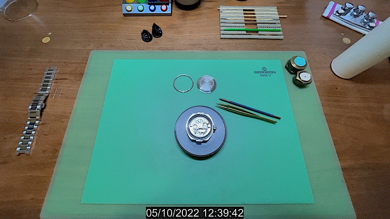 After taking an “as received” photo, I removed the bracelet, took more photos and then went about opening the case.