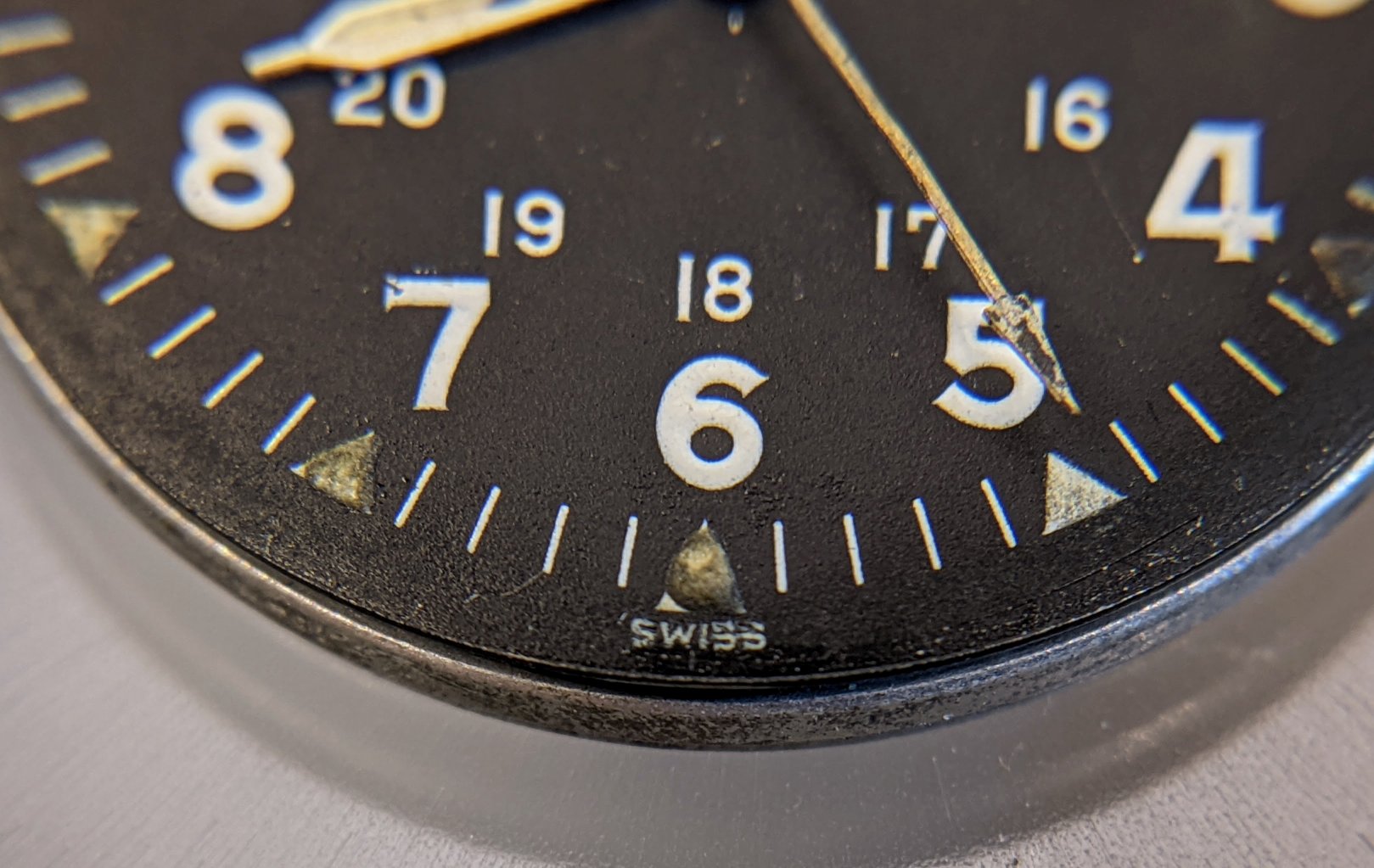 From the factory, the hands were lumed but the dial was not, but then at some point in its past the watch had lume added to the dial. See this a lot in this vintage of service watch, & looks like a pretty amateur application in this example, 6 gets a double helping & 5 gets nothing...