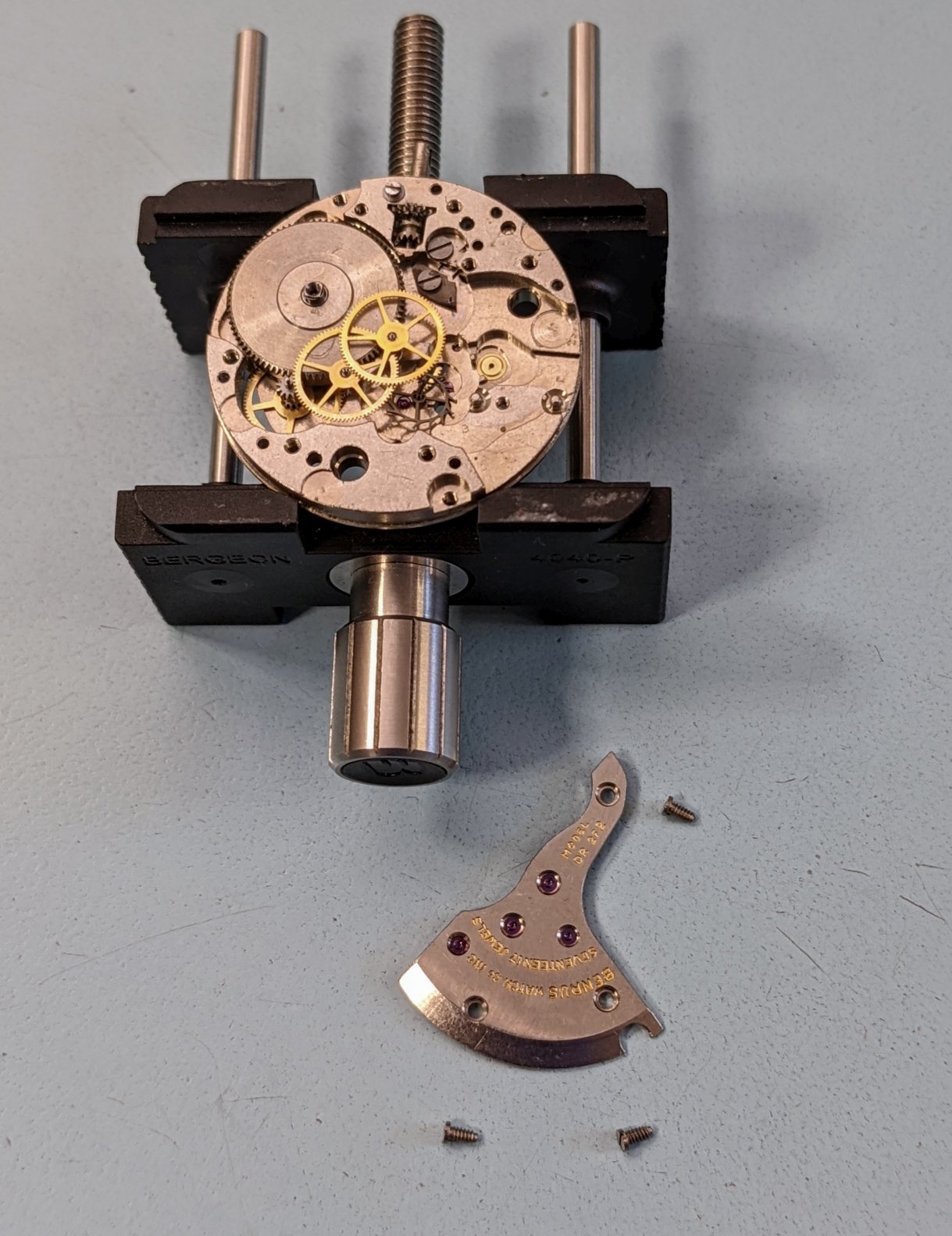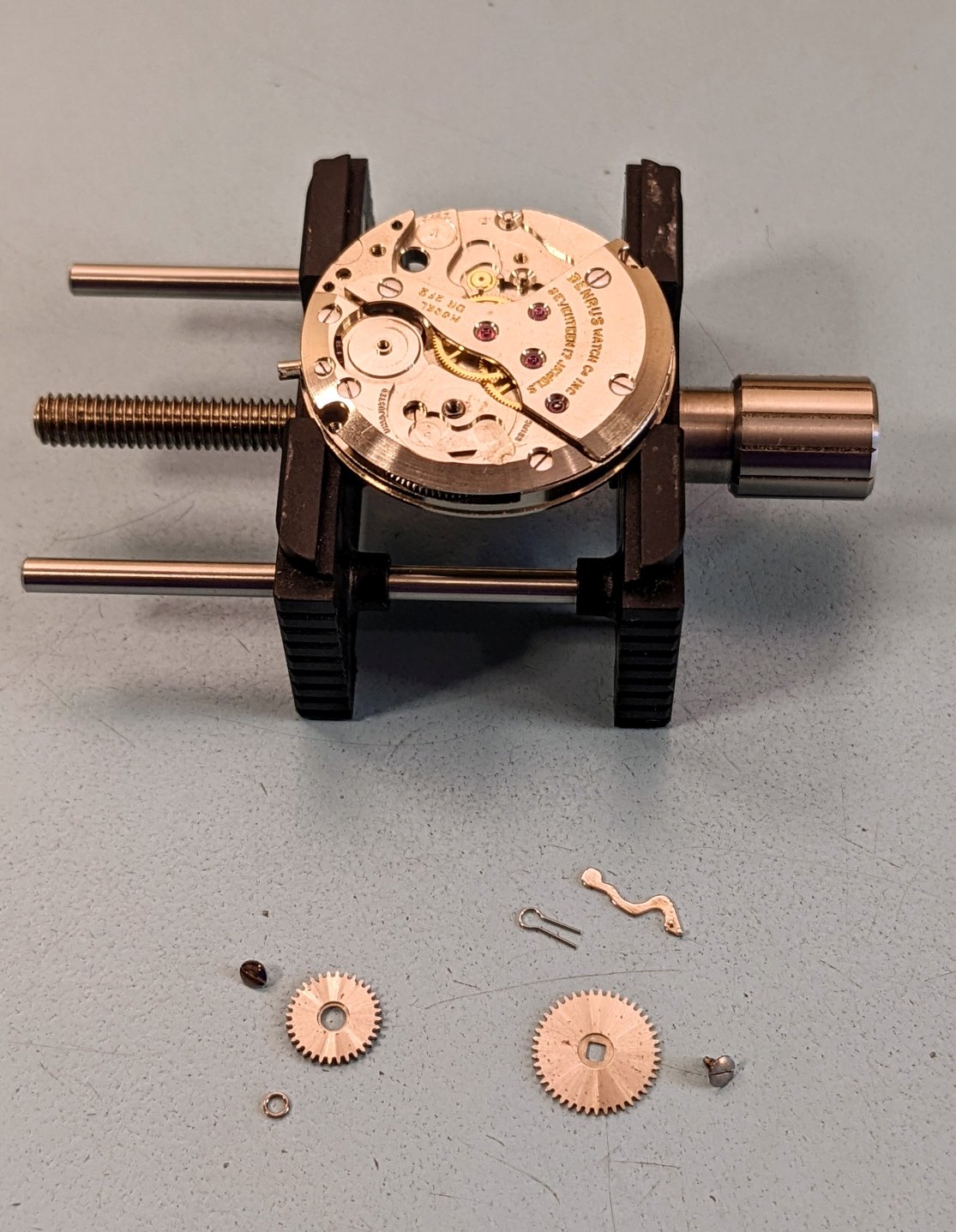 Fundamentally it's a pretty basic watch, 3 hands, hacking, & that's it. Doesn't fill up very many cubbies in the parts tray. Off to the cleaner.