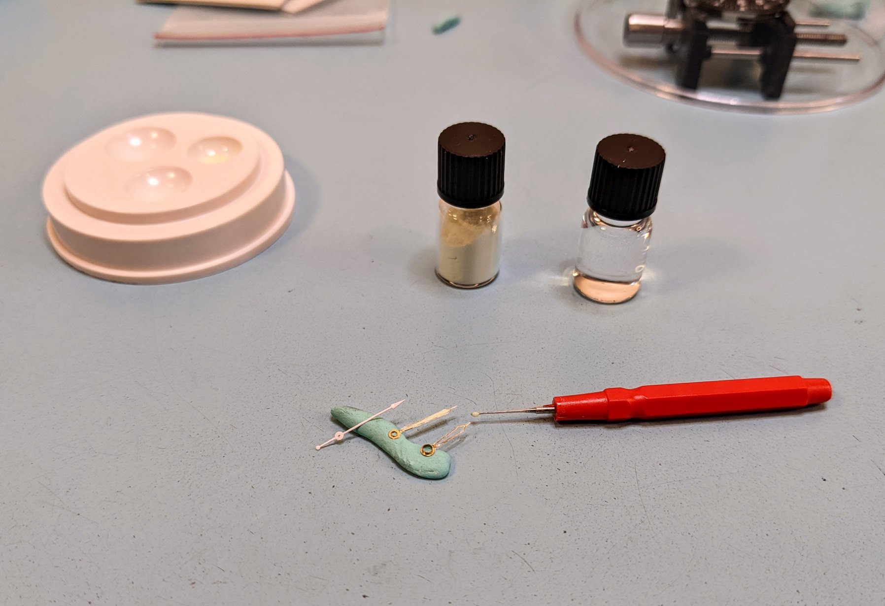 The Geiger Counter was quiet for the dial & hands, so whatever was applied before was not Radium. Gently scraped off the grotty looking old lume, but that still took off the paint for the hour index underneath. So, let's see how some flat white acrylic model paint looks.