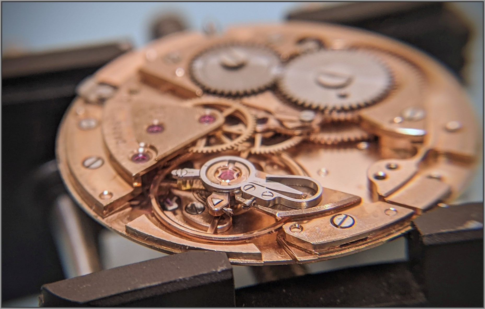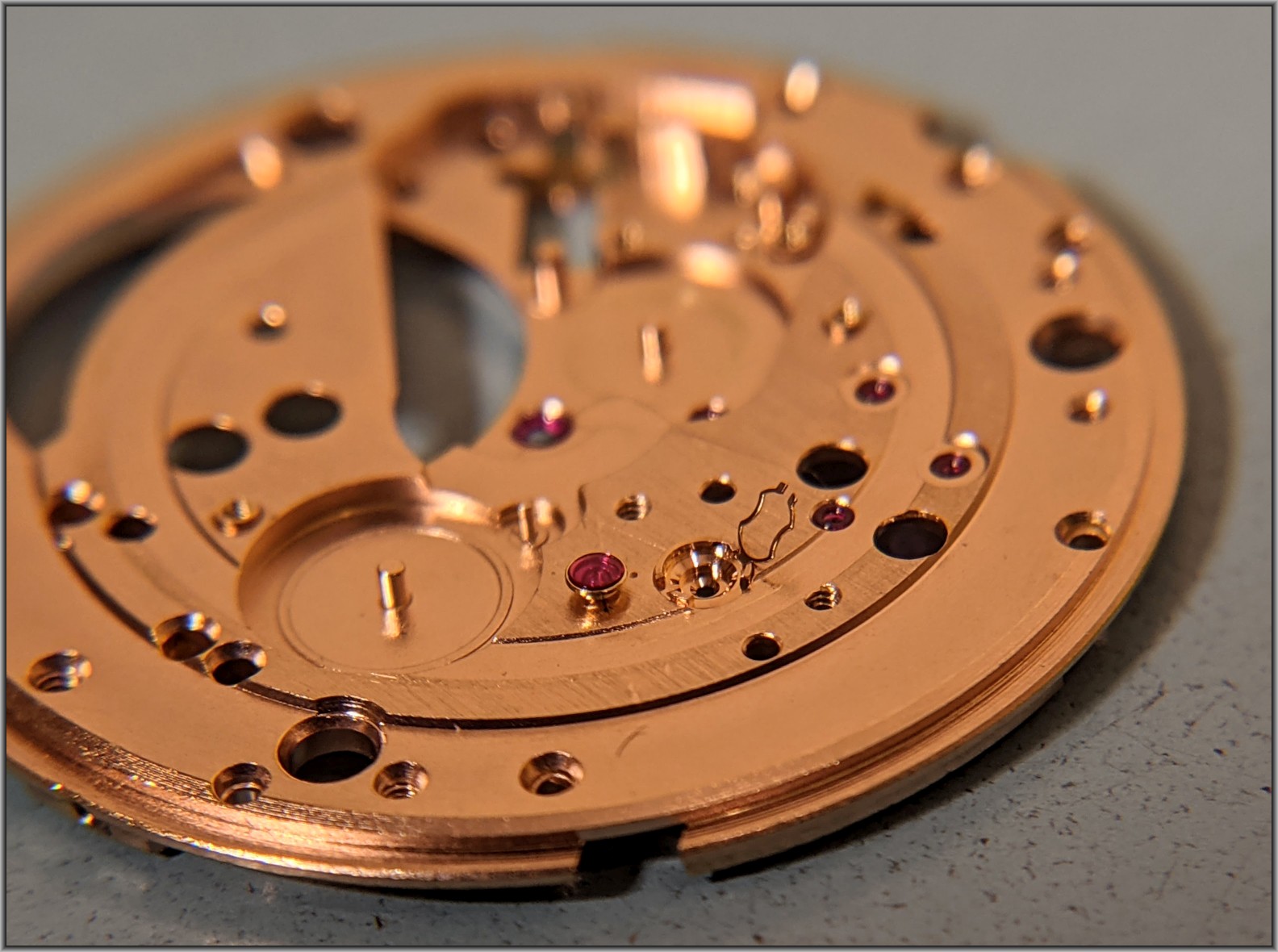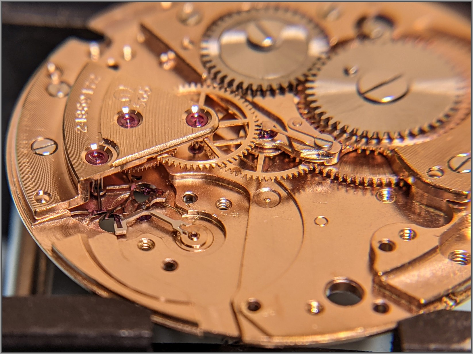 Watchmaker side of the movement (if you have sharp eyes, you can spot the beginnings of the winding / running problems…).