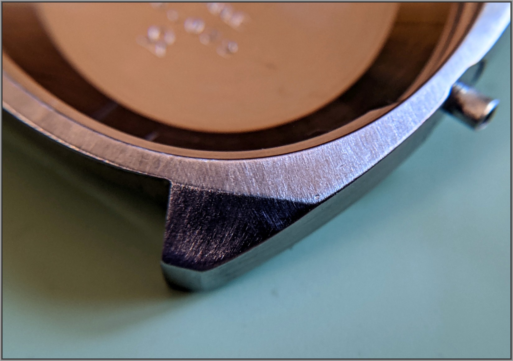 Fine radial brushing for the top surface, mirror polish for the sides & lugs. That’s good for the case, now back to finish up on the movement.