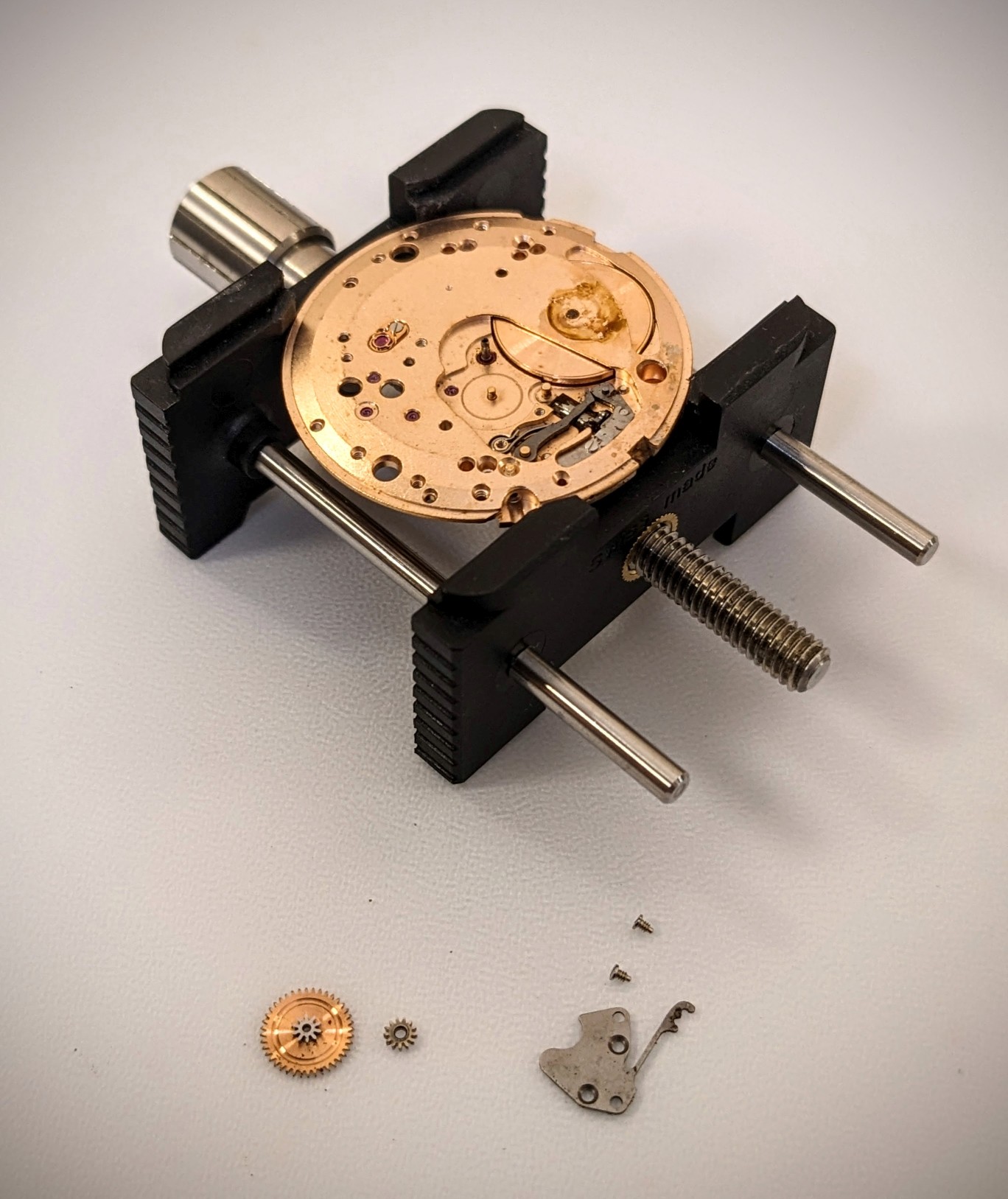 路Came to me as a "bag of parts". Thought I might use it as a donor movement, but then had some warm feelings towards the groovy Jeffersonia dial...
