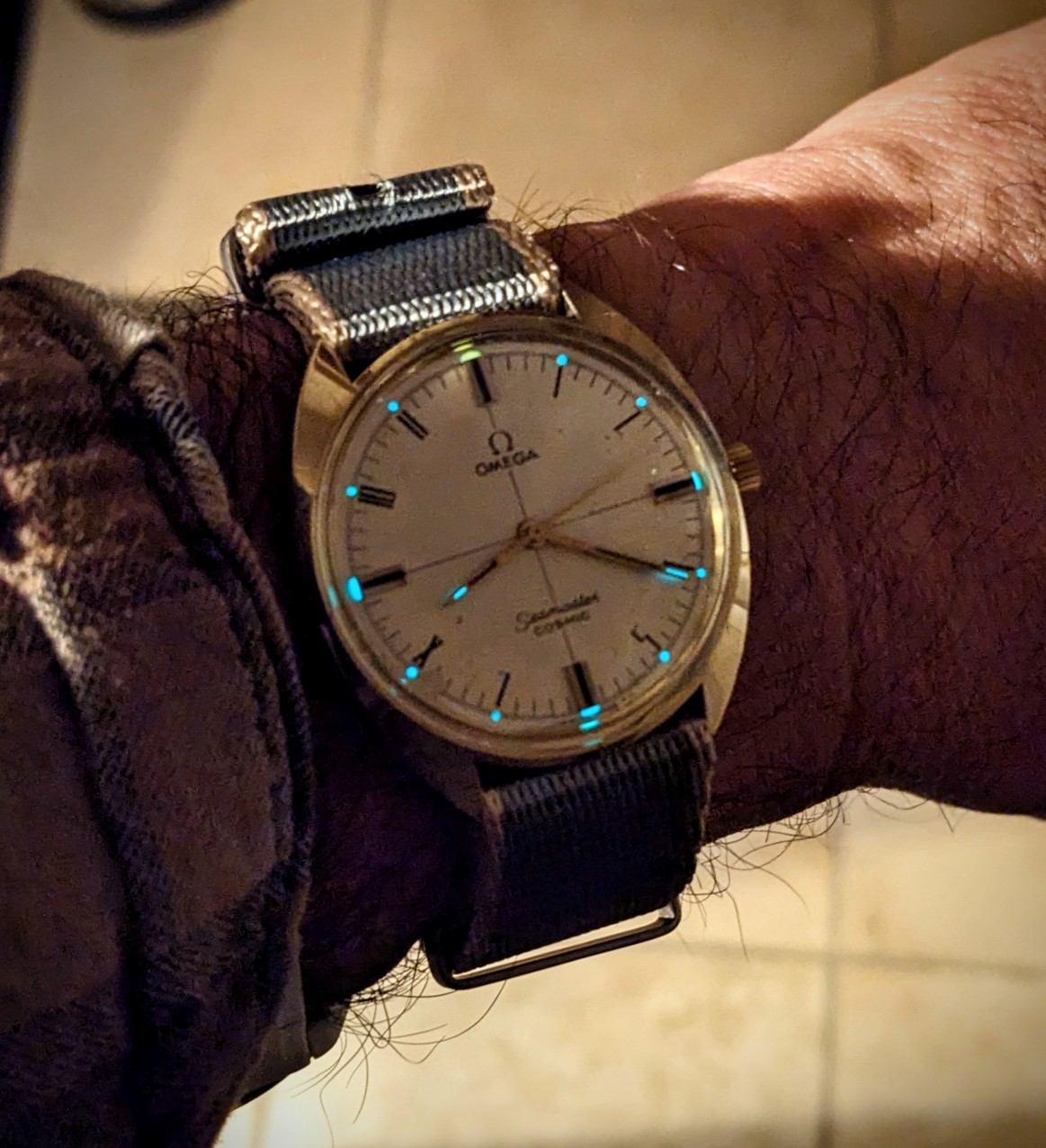 Normally I would want to leave the original lume untouched, but with the dial in as rough a shape as it is, don't feel guilty about leaving my mark on this old guy with a re-lume.