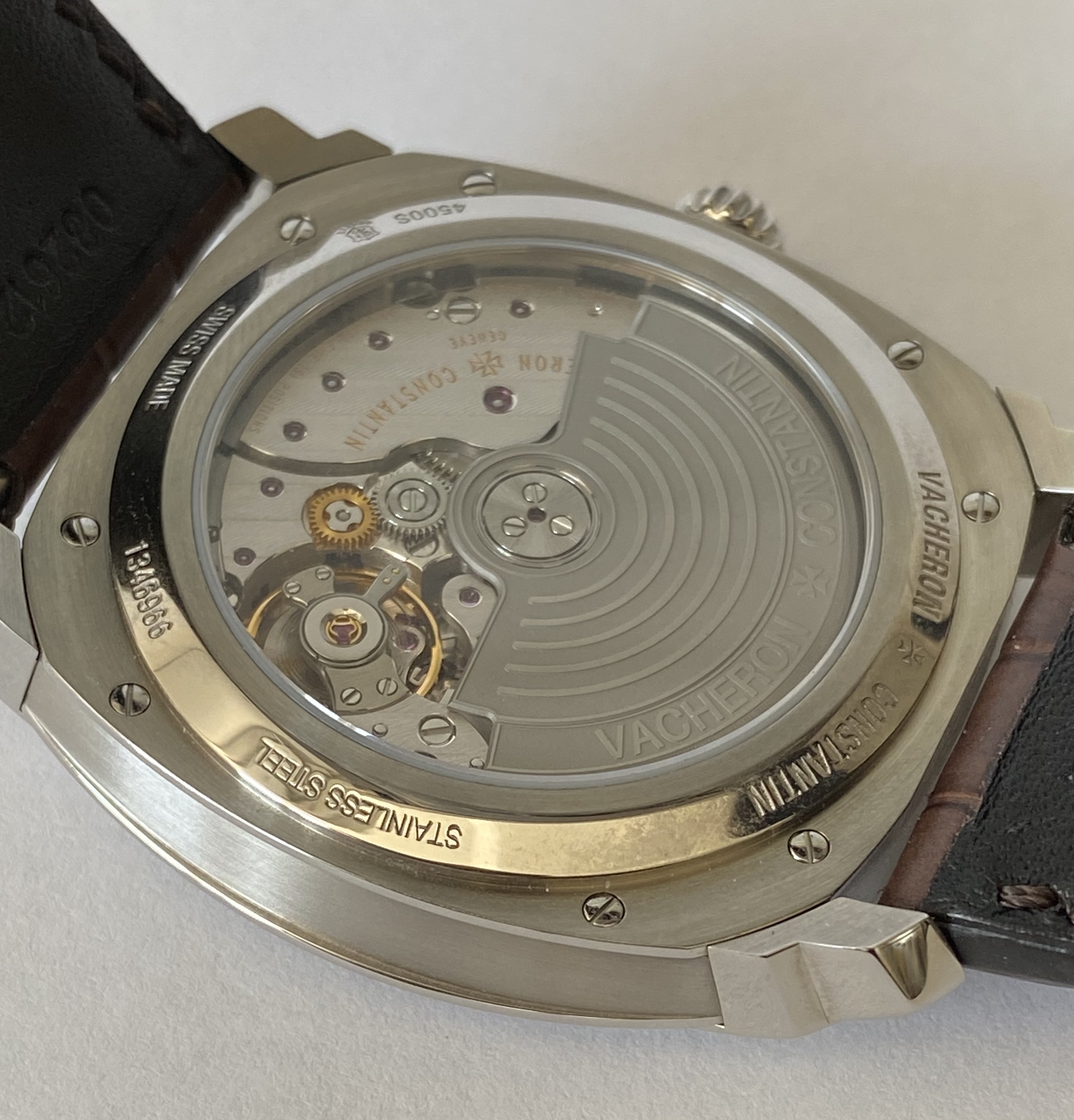 But first let's get to the characteristics of the Quai de L’Ile. In the previous series of the QdL, the movement 2460QH was used and I am pleasantly surprised that the Quai de L‘Ile has now almost the same manufacture movement as the Overseas (5001/1). The only difference is the rotor, which was not made in 22k gold, but in tungsten. But I think this greyish shiny material fits very well with the entire retro industrial design of the Quai de L’Ile. Since not only the case, but also the movement was manufactured according to the requirements of the Geneva seal, the workmanship is of course once again very attractive and at the highest level.