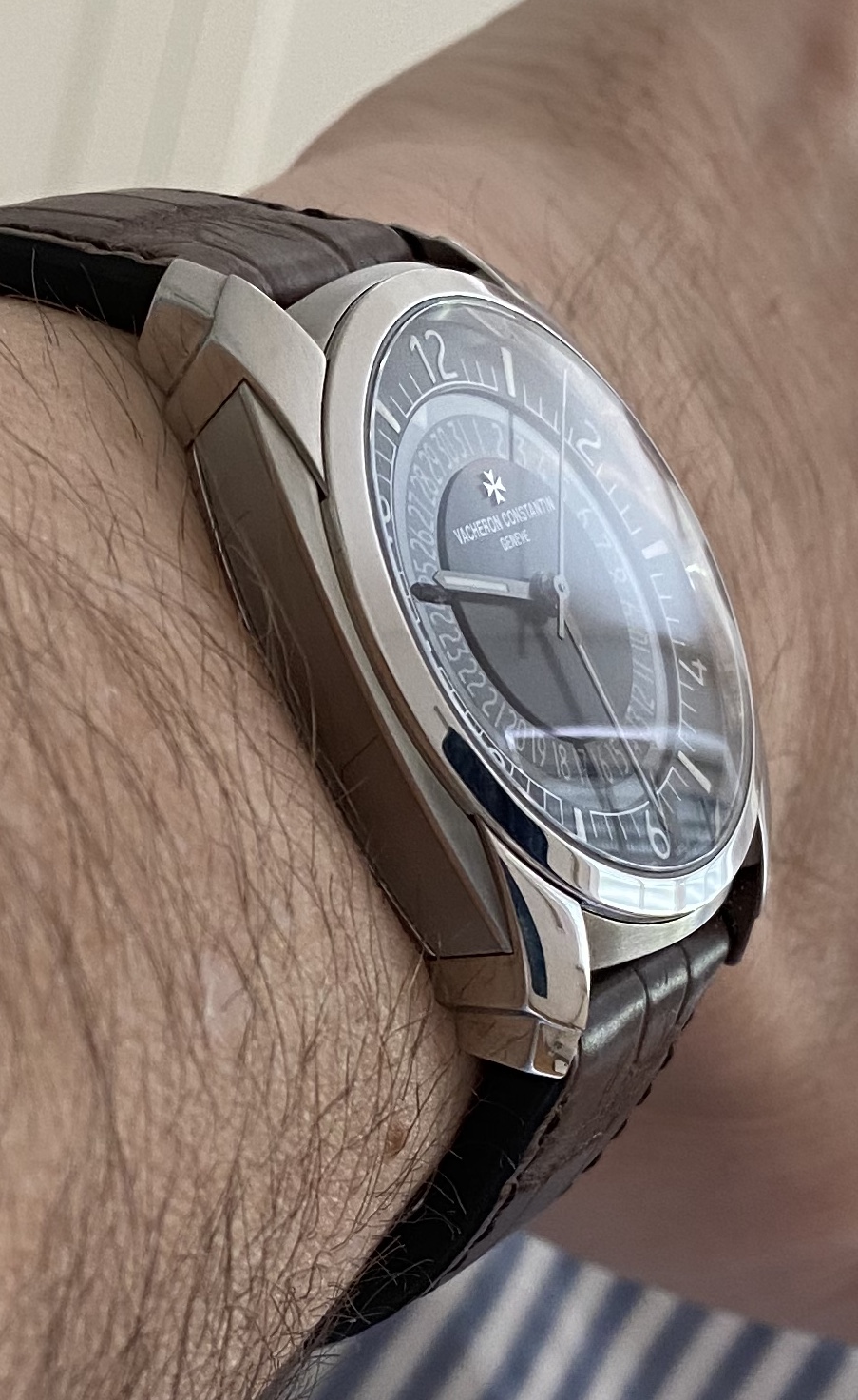 In addition to the design of the shapes, Vacheron Constantin naturally convinces with the play between the different surface treatments and the transitions. The side flanks are beautifully designed to kneel down and due to the relatively short lugs, the watch nestles amazingly elegantly on my wrist despite its 41mm. And if the advantages of stainless steel combine aesthetically with the quality of design and workmanship, then I could just celebrate it for hours.