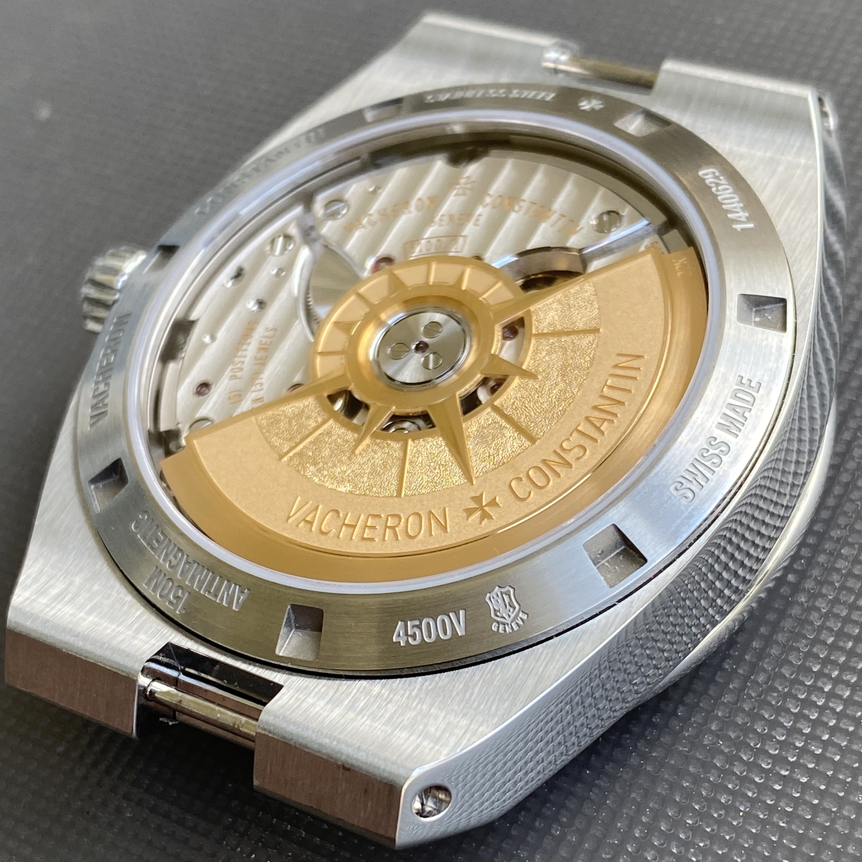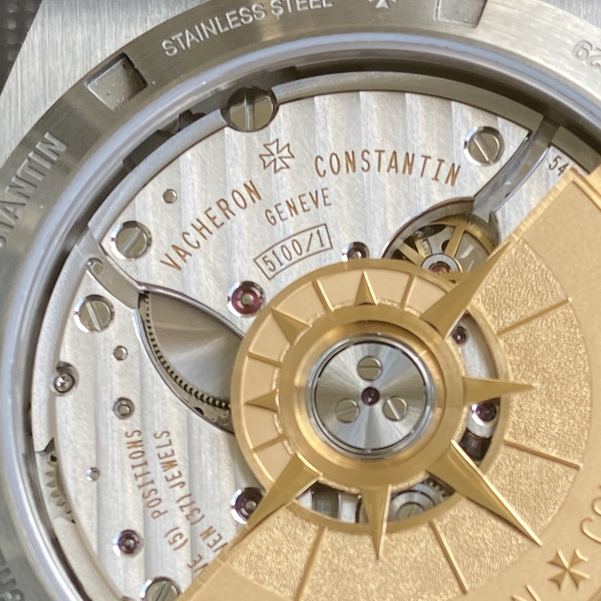 Let's get to the essence of a clock - the movement. The automatic caliber 5100 was specially designed and developed by Vacheron Constantin for the revision of the Overseas in 2016 in-house. It consists of 172 parts and oscillates at 28,800 v.p.h (4Hz) and has a power reserve of 60 hours thanks to 2 barrels. The Overseas is also protected against magnetic field influences by a soft iron cage and has a water resistance of 150m.