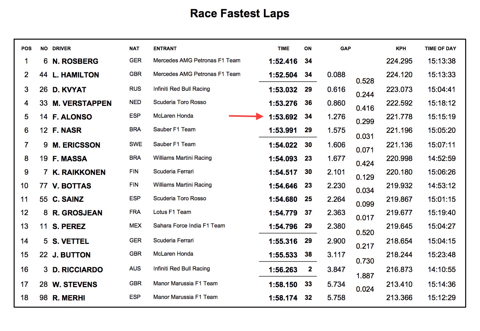 ··Ash @ ΩFHoping we might see something positive this weekend from Fernando & Jensen, the track should play more to the MP4-30's strengths being a very tight high downforce track with low average speed, Honda's chief also say they'll be able to give the drivers the ability to fully utilise the ERS system for the first time this year.