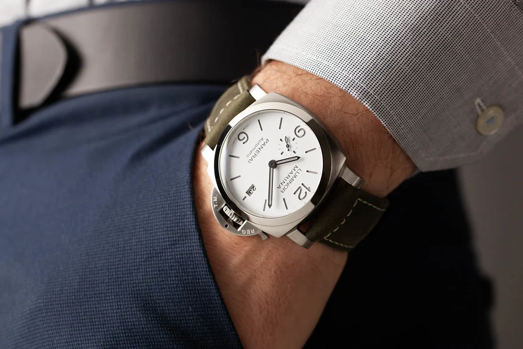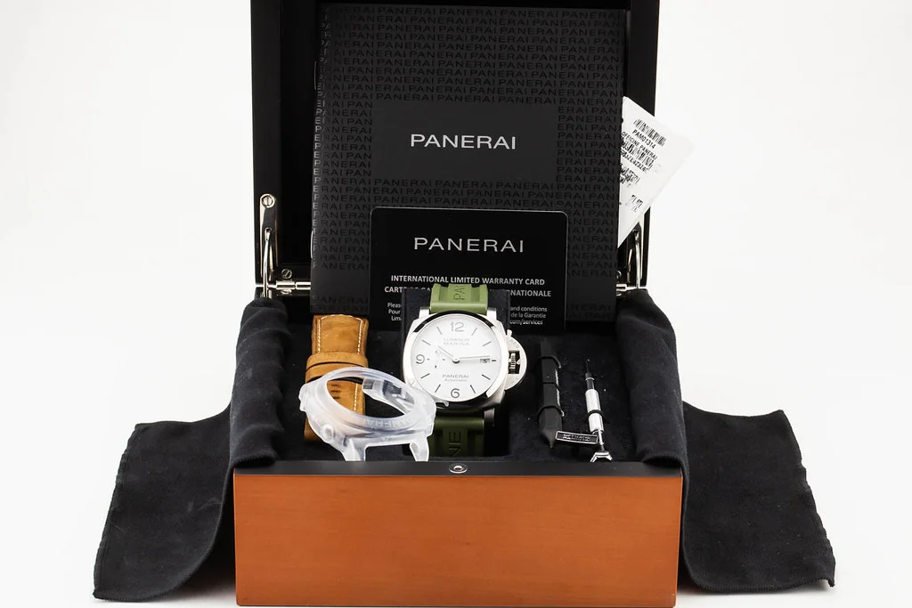 ·Up for sale is an excellent condition Panerai Luminor Marina 1314 44mm White Dial reference # PAM01314. It comes with all boxes, papers, booklets, leather OEM strap, bezel guard & tools and Panerai Warranty Card dated January 2022.
