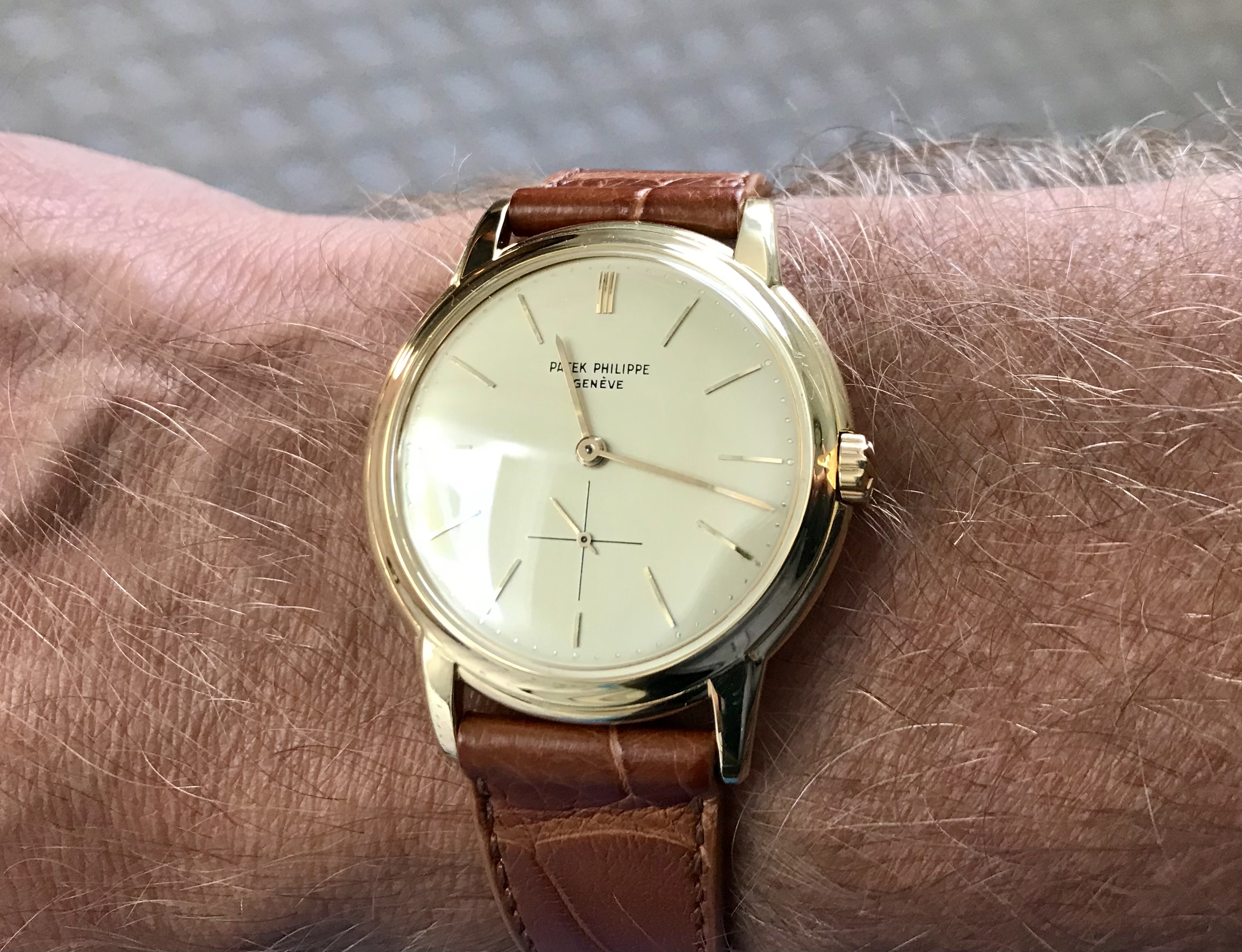 ·I recently was fortunate to obtain a Patek Philippe 2551J from 1958 with the esteemed caliber 12-600AT. It’s a beautiful watch, a good timekeeper, and a grail for me. It complements my rose gold Zenith caliber 71 from the same period.