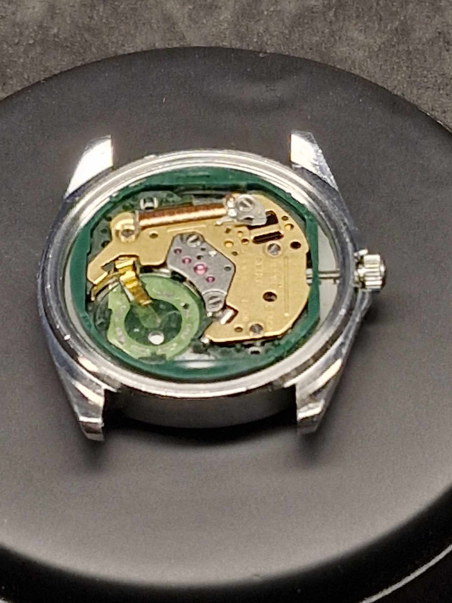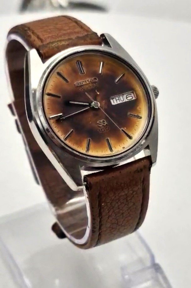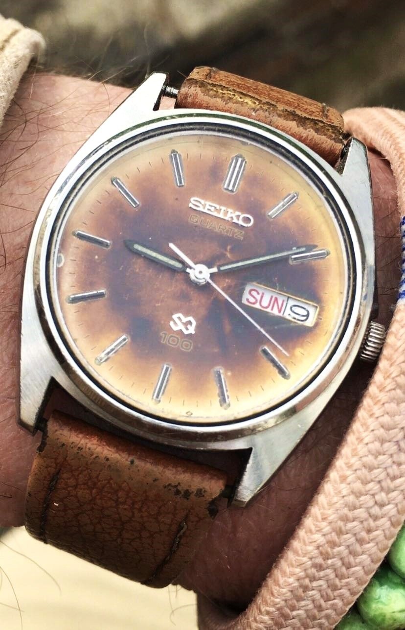 ·I've never seen a Seiko quite like this before. Radium burns without the radium. It had suffered from a leaking battery, and I gather the fumes can sometimes create such an effect, although I have never seen one quite so dramatic before. As a patina guy, this is gold for me, and i picked it up for a song recently. Quick fettle by Andy Windle and she is running like a charm. I love it.