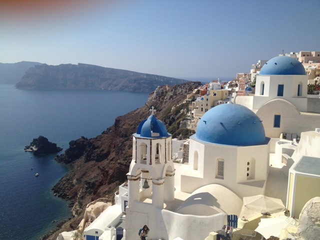 Here's one from me. I'm on the amazing island of Santorini in the picture postcard village of Oia, famous for its sunsets.