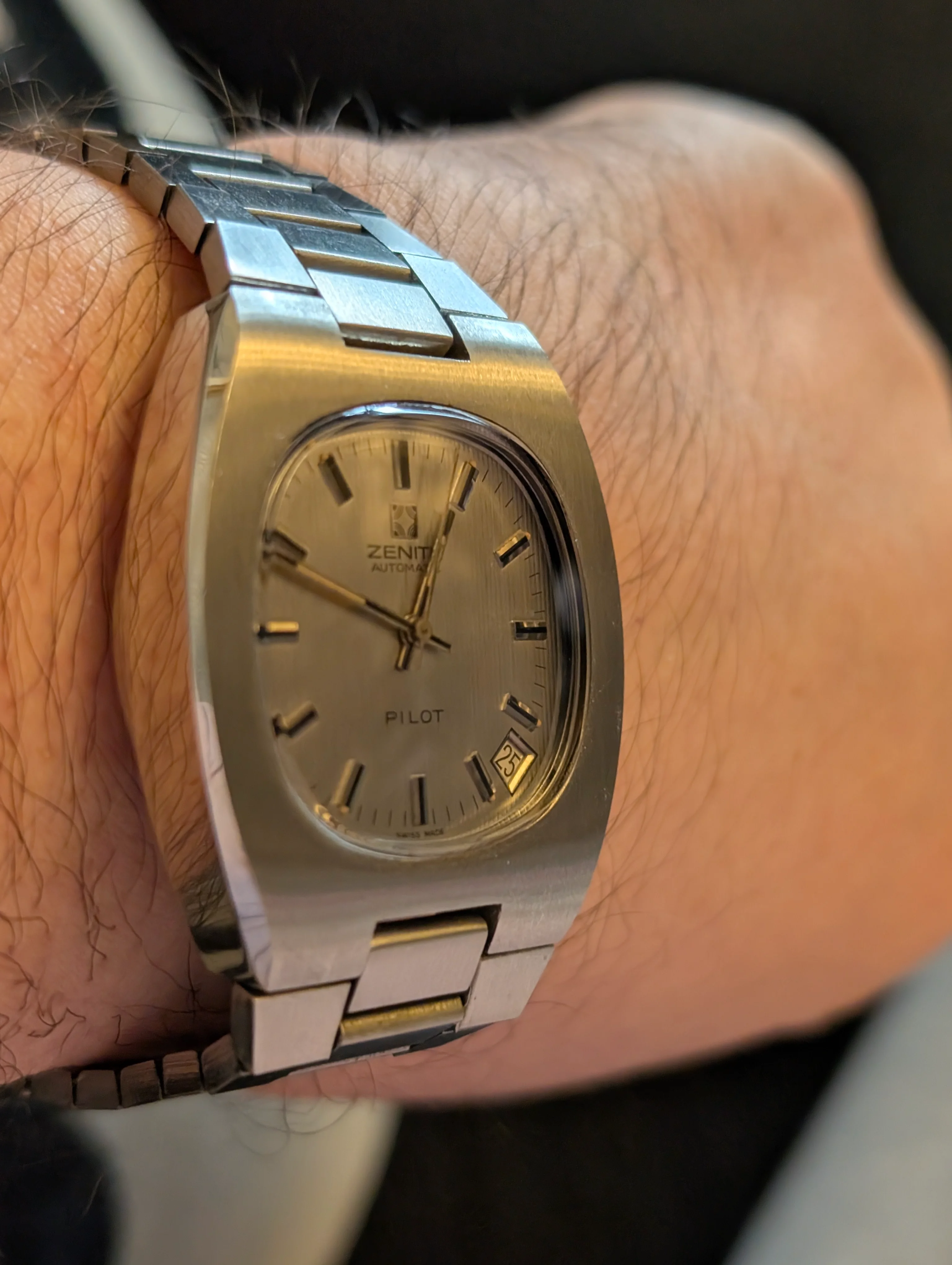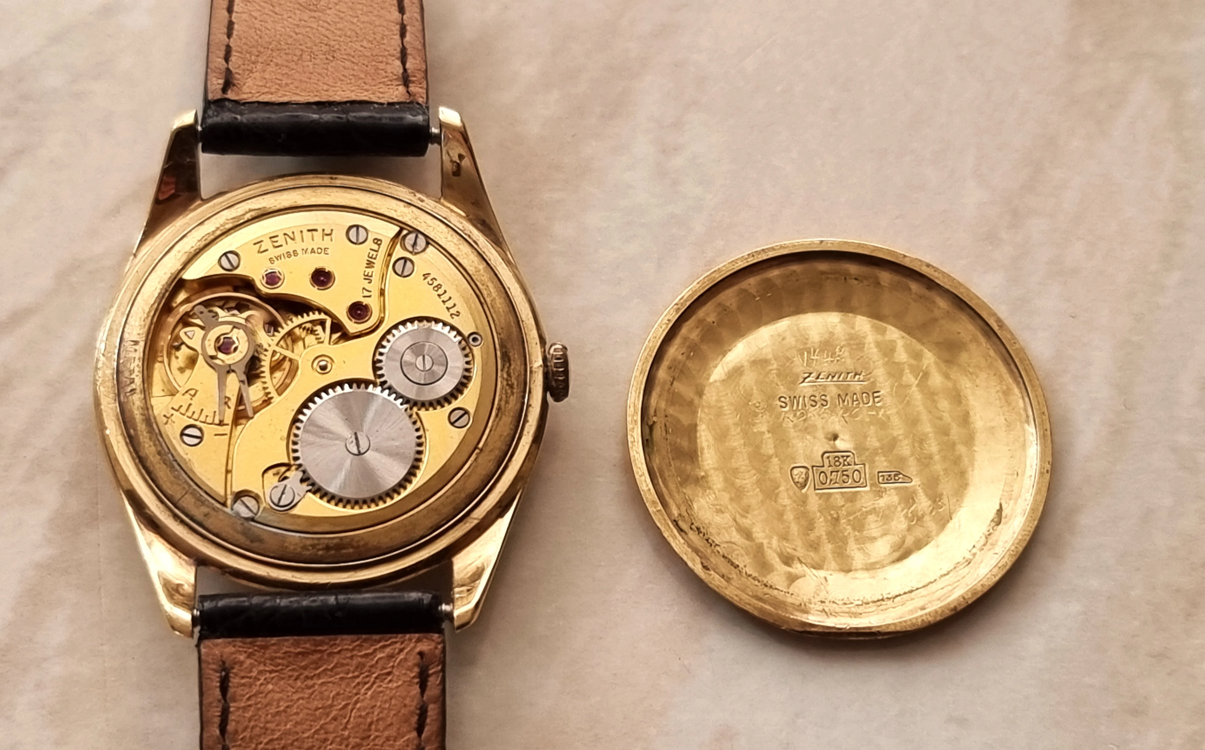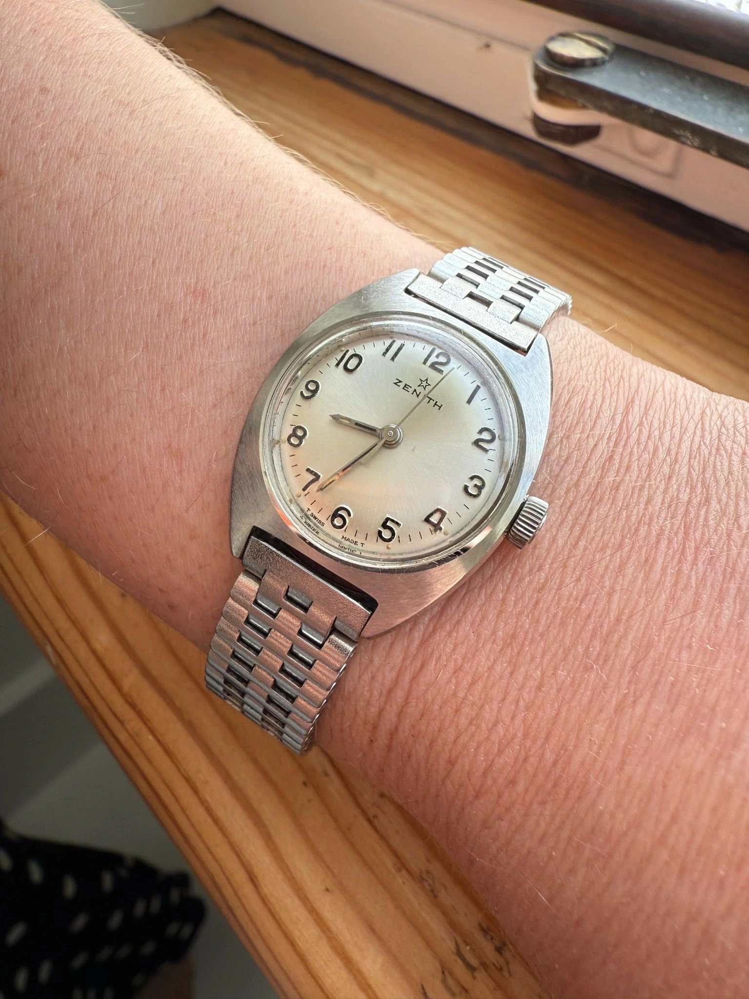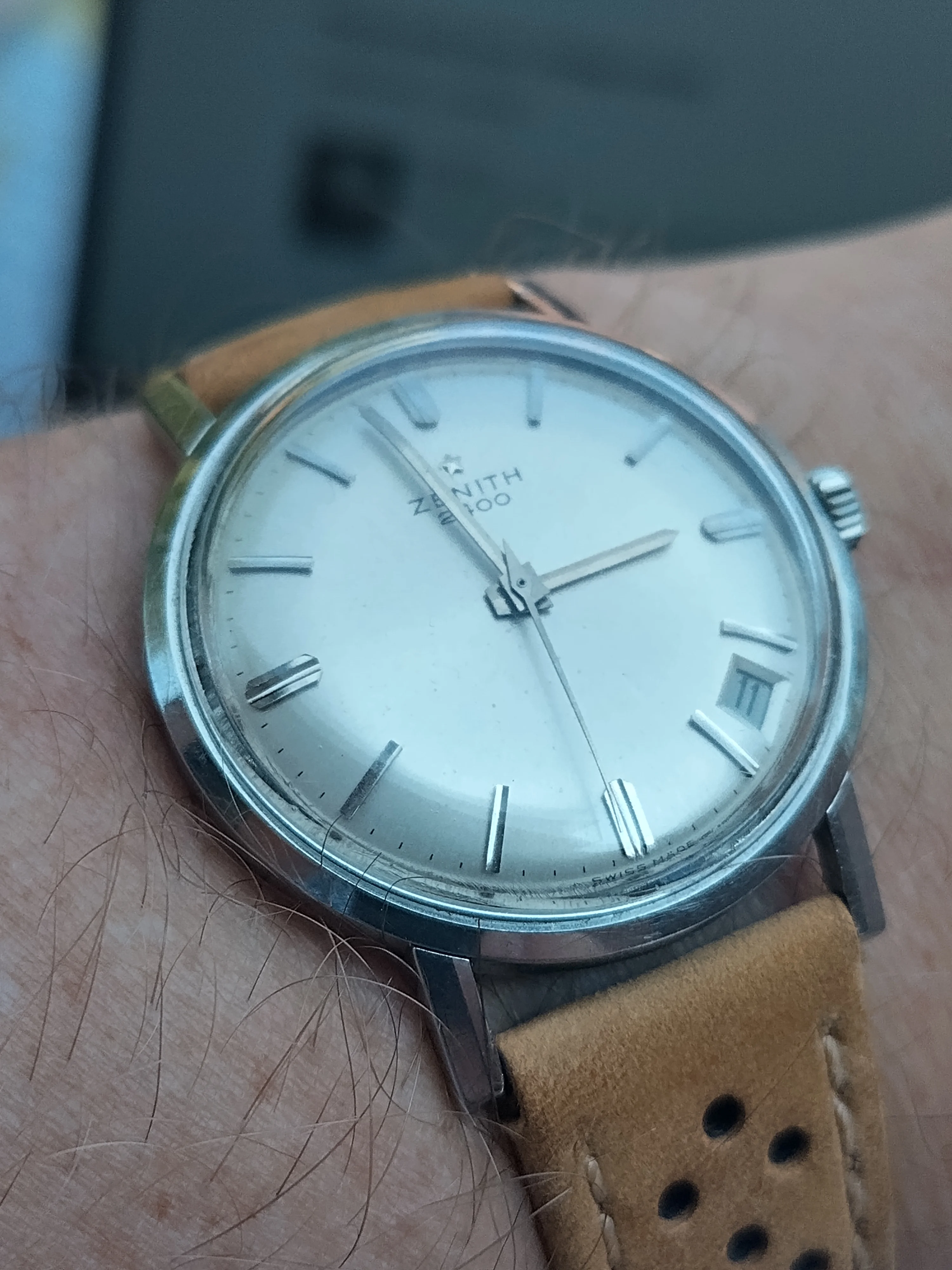 I came a cross this beauty from late 1950s (I think) today. Haven't opened up the caseback yet, but I believe it should house Zenith Cal 40 or 126-6. According to seller it's been in their family since the purchase, of which last 23-ish years in a box at the attic. Didn't measure it yet to confirm, but I think it's the XL (36mm) version of Zenith Sporto.
