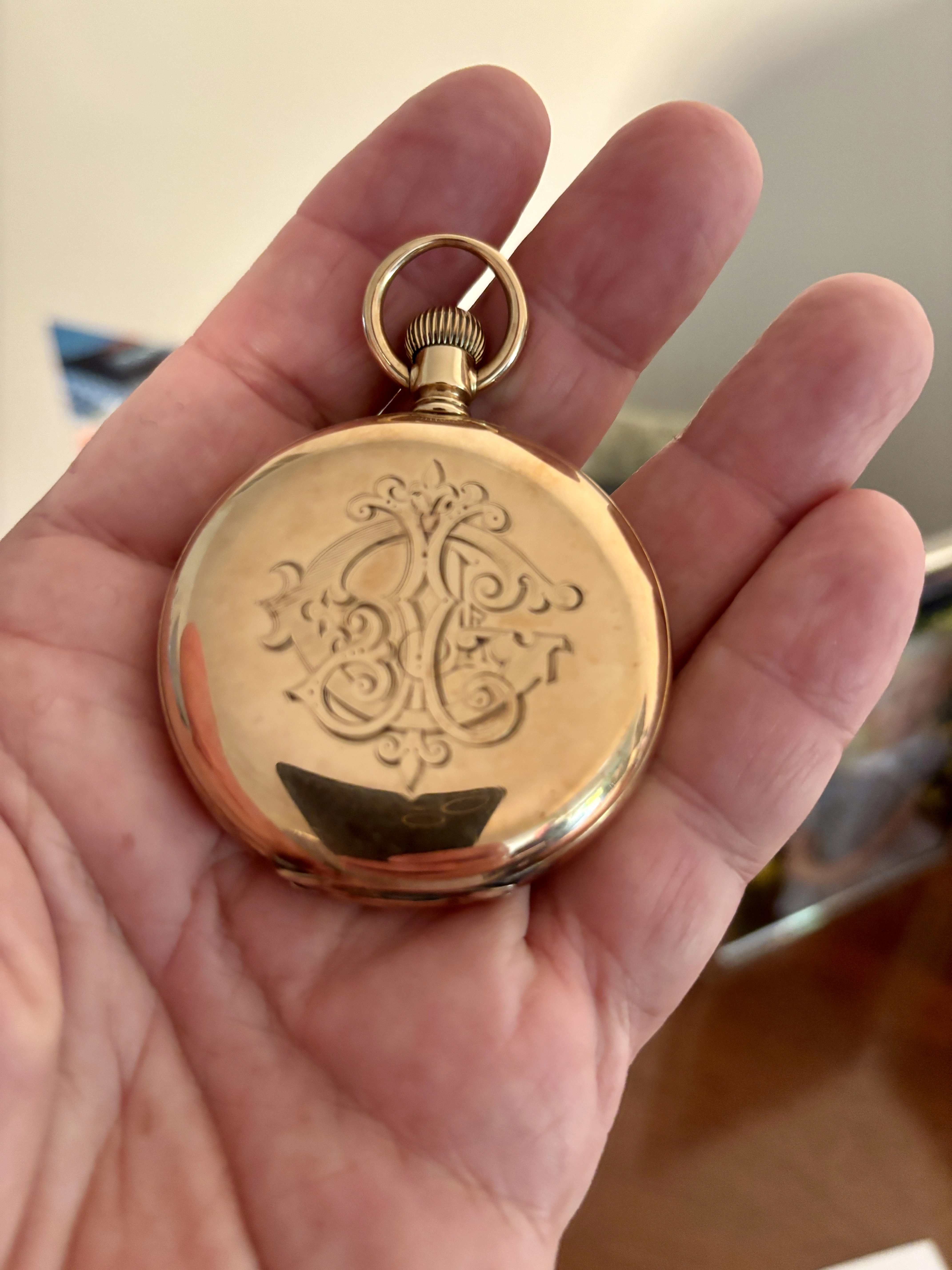 ··Color Commentator for the Hyperbole.Greetings… This very cool watch is in amazing condition but isn’t running. Its been in my friend’s family, mothers side, for a century or more. I’ve advised him to take it to our local watchmaker, MJ to get it serviced. I’d very much appreciate any insights based on experience and an estimate of its value. The clipper ship seems to indicate some association with shipping but his genealogy efforts show no associations in the family tree. He plans to leave it to his son but I am pushing him to get it serviced now. (He jokes that he has ten years left) … Thanks!