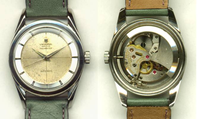 2. On non-bumper models, the words “Universal” and “Geneve” are serifed.