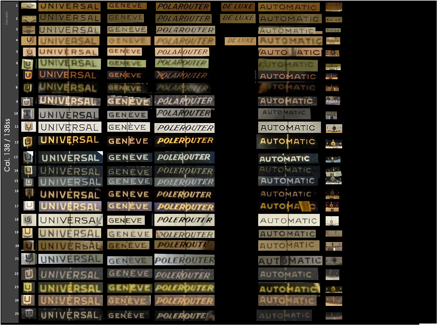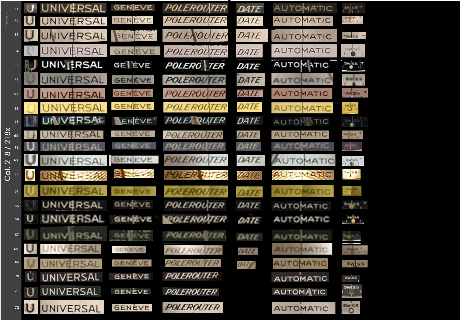 1. The sample set echoes the observation I’ve made previously on this Forum that some dials have an accent grave over the “E” in the word “Genève” while others do not. The presence or absence of the accent grave does not appear to be correlated with movement caliber in the Cal. 69, 218 and Polerouter 138 families.