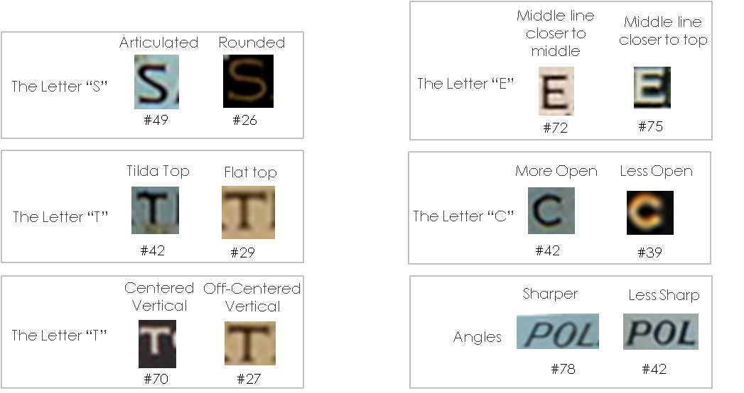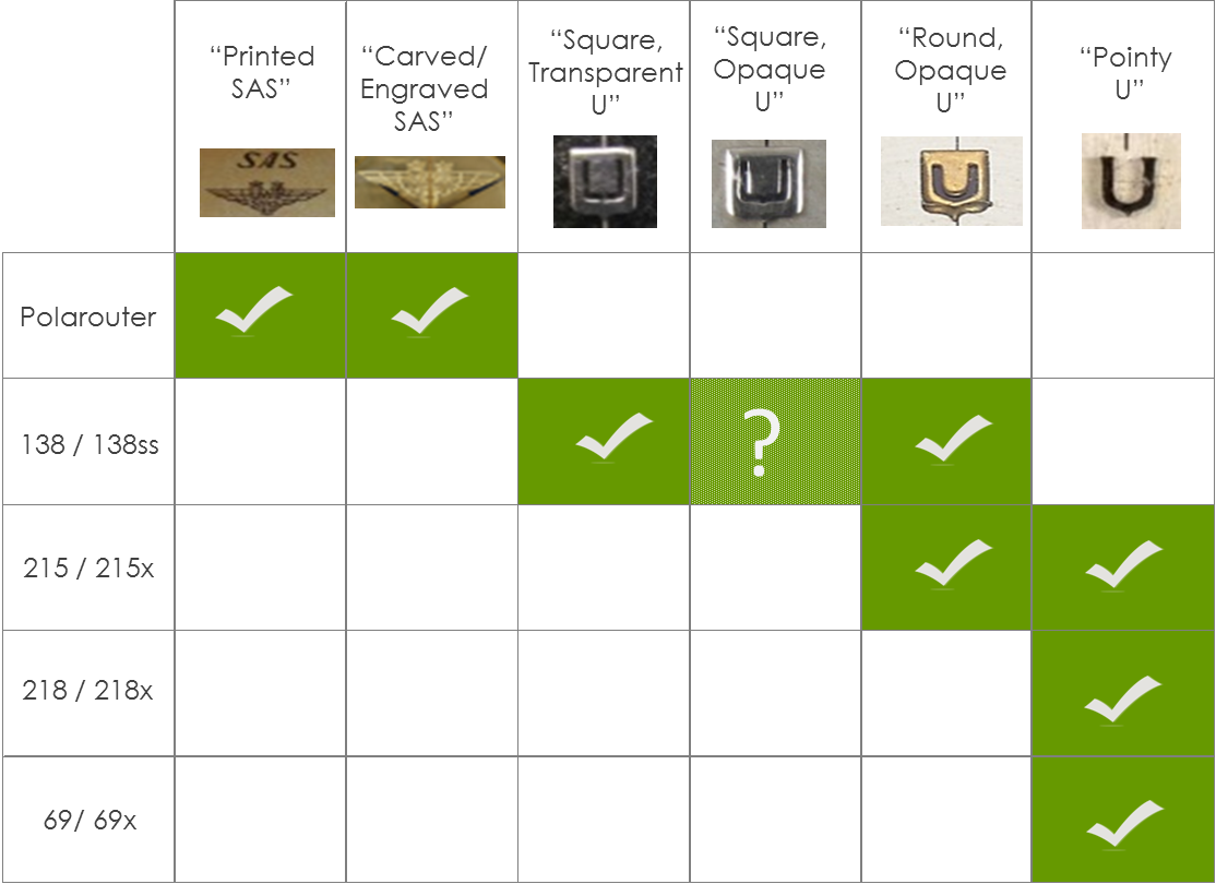 1. The sample set reinforces the observation made by others on this forum that the Letter A is always flat-topped on Polerouter models (i.e. non-Polarouters)