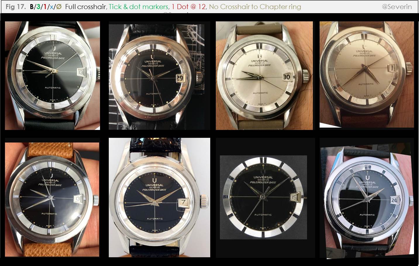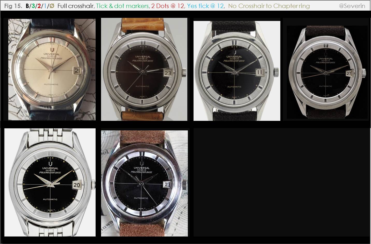 A rather intense period at work over the past several months has now subsided; to help me unwind, I’ve taken a look at some watches, in view of trying to better understand the issue of hour and minute markers on Polerouter dials. I’ve assembled some information for my own reference; I share it here for your interest and input.