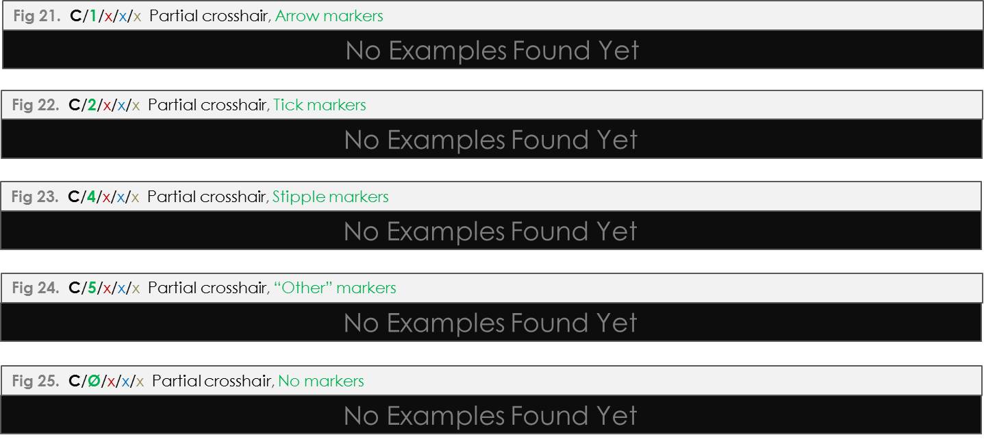 2. Crosshairs can be full or partial (i.e. lines on a full crosshair go north-south and east-west, lines on a partial crosshair only go east-west)