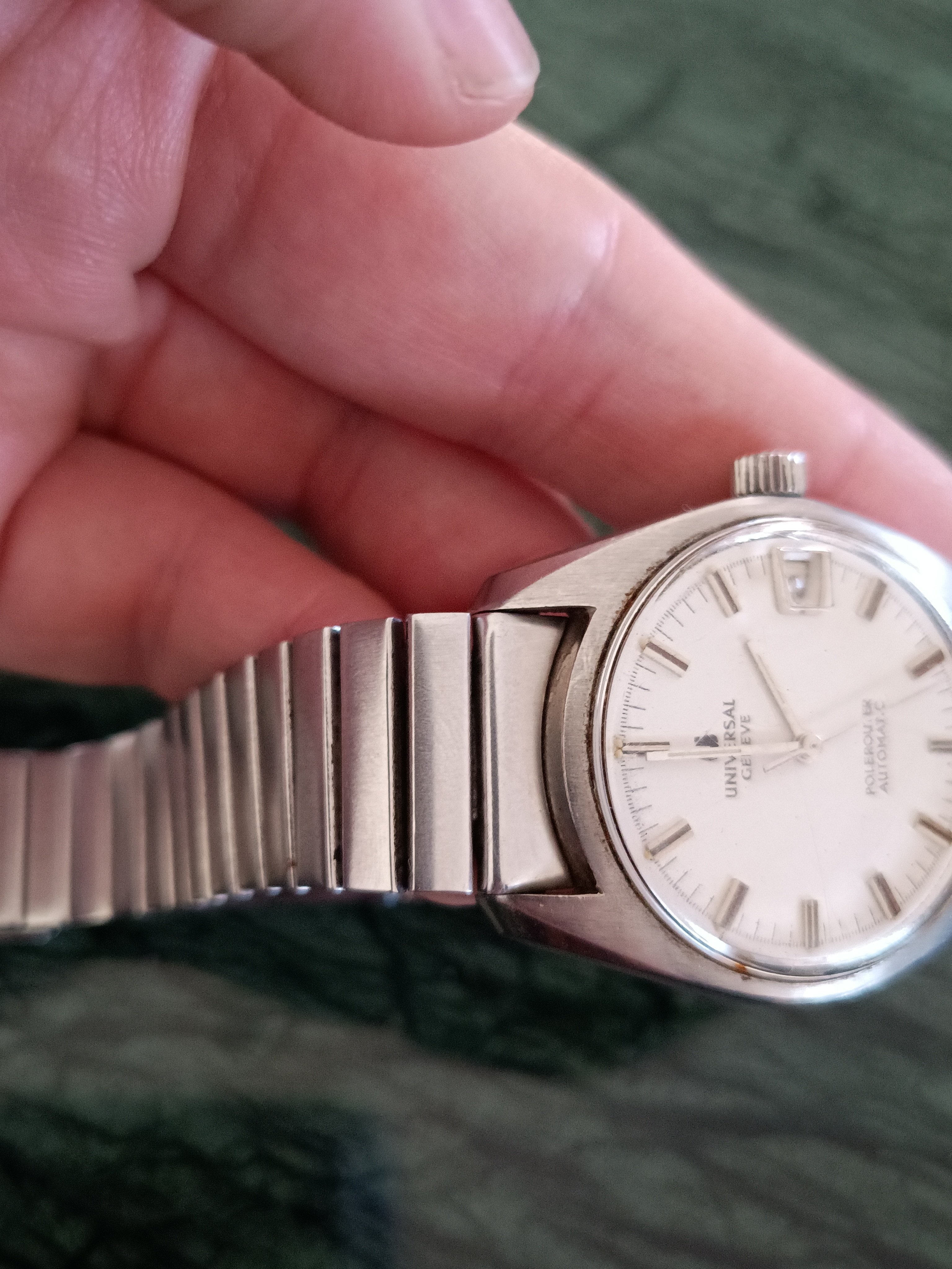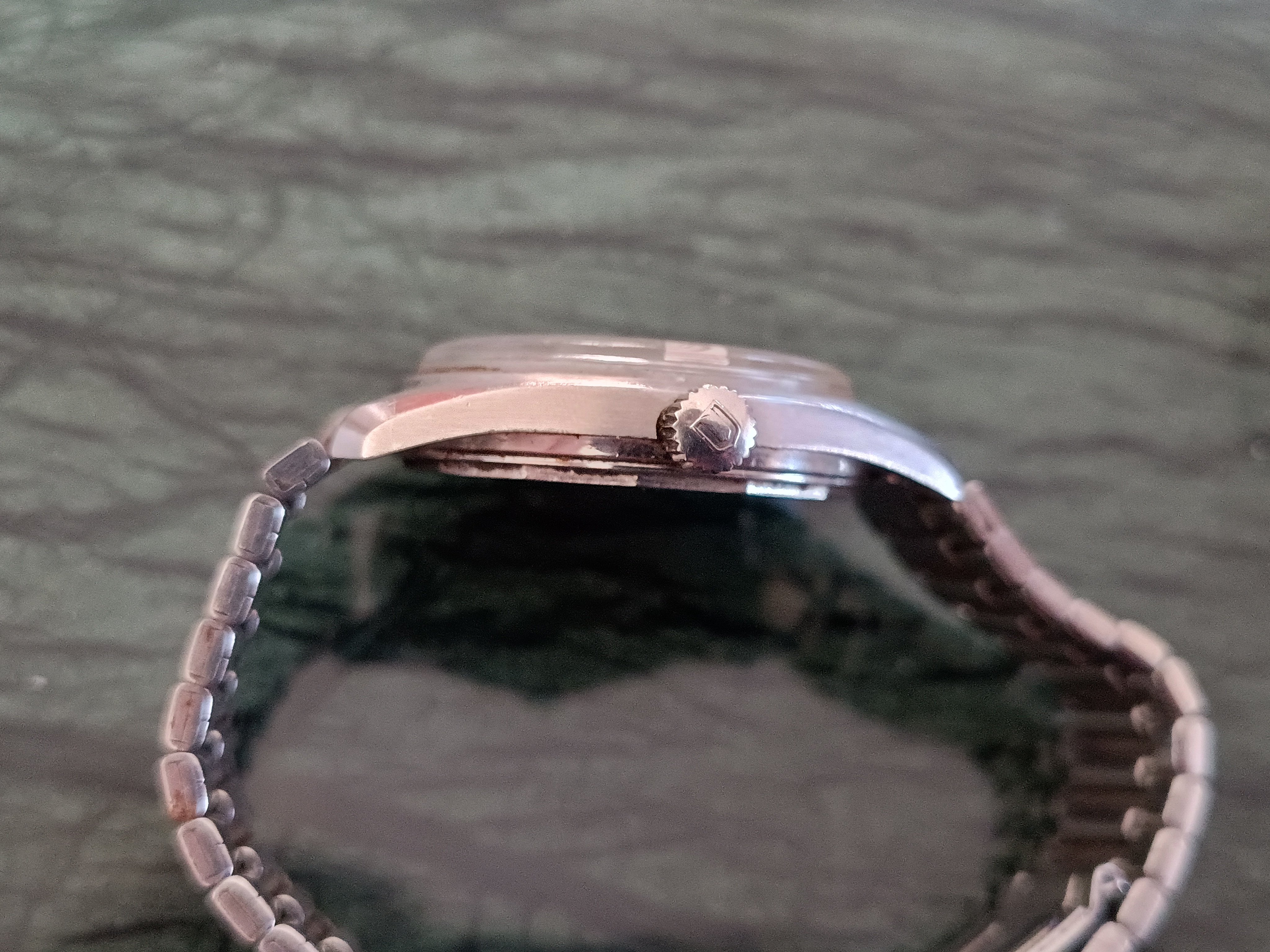 The watch itself is extremely dirty and kinda gross but the case seems to be in good shape and unpolished, the original crystal and crown are still there so it only needs a good cleanup and movement service to be up and runnig again - although it is not the most sought after Polerouter I thought it was still worth saving.