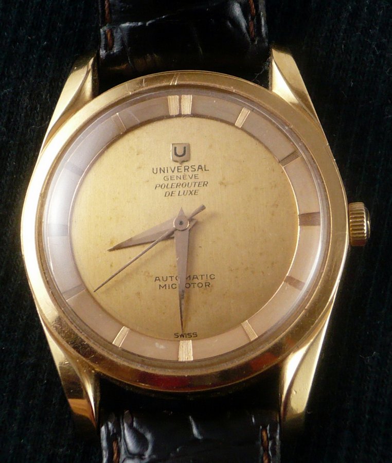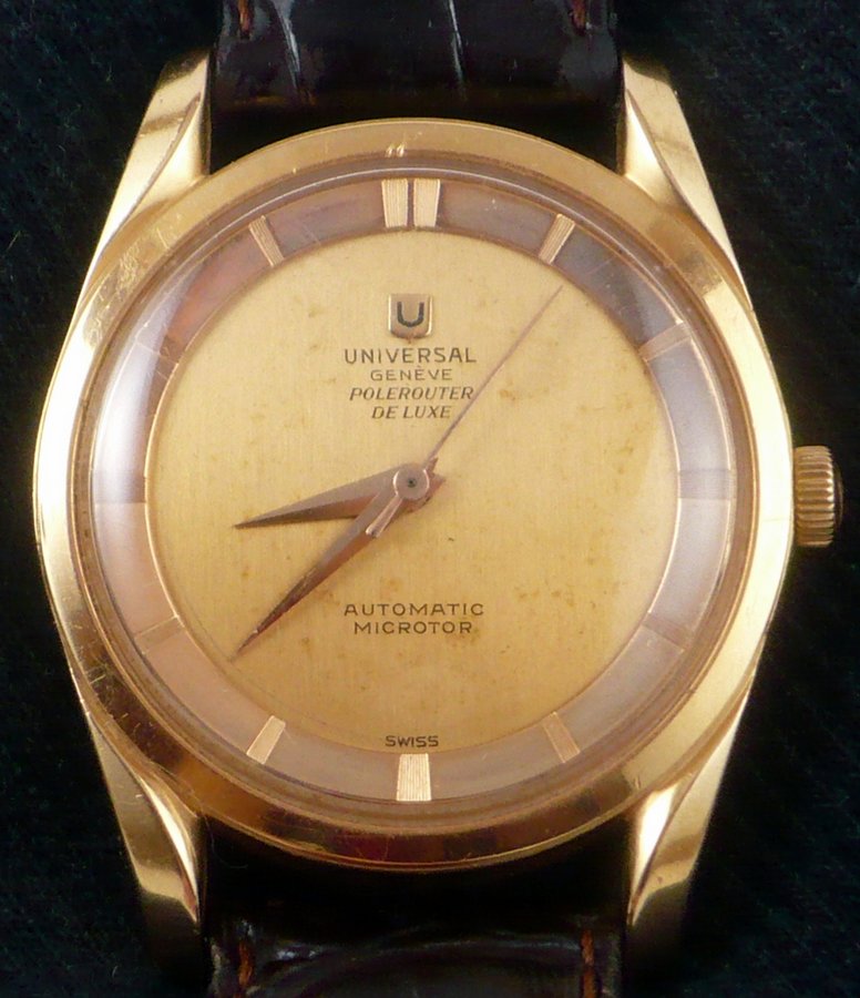 I have owned a Universal Geneve Polerouter watch for a long time. My father gave it to me when I was one year old, in 1967. It was shown to me on occasion during my childhood but I don't recall ever seeing it functioning back then. I took it with me when I left home and it stayed in a drawer up until about 10 years ago, when I had it serviced. It works nicely, and keeps time quite well. I use it now, for months at a time sometimes, then put it aside for a while. I feel I should have taken better care of it and would like to have it checked out and serviced again.