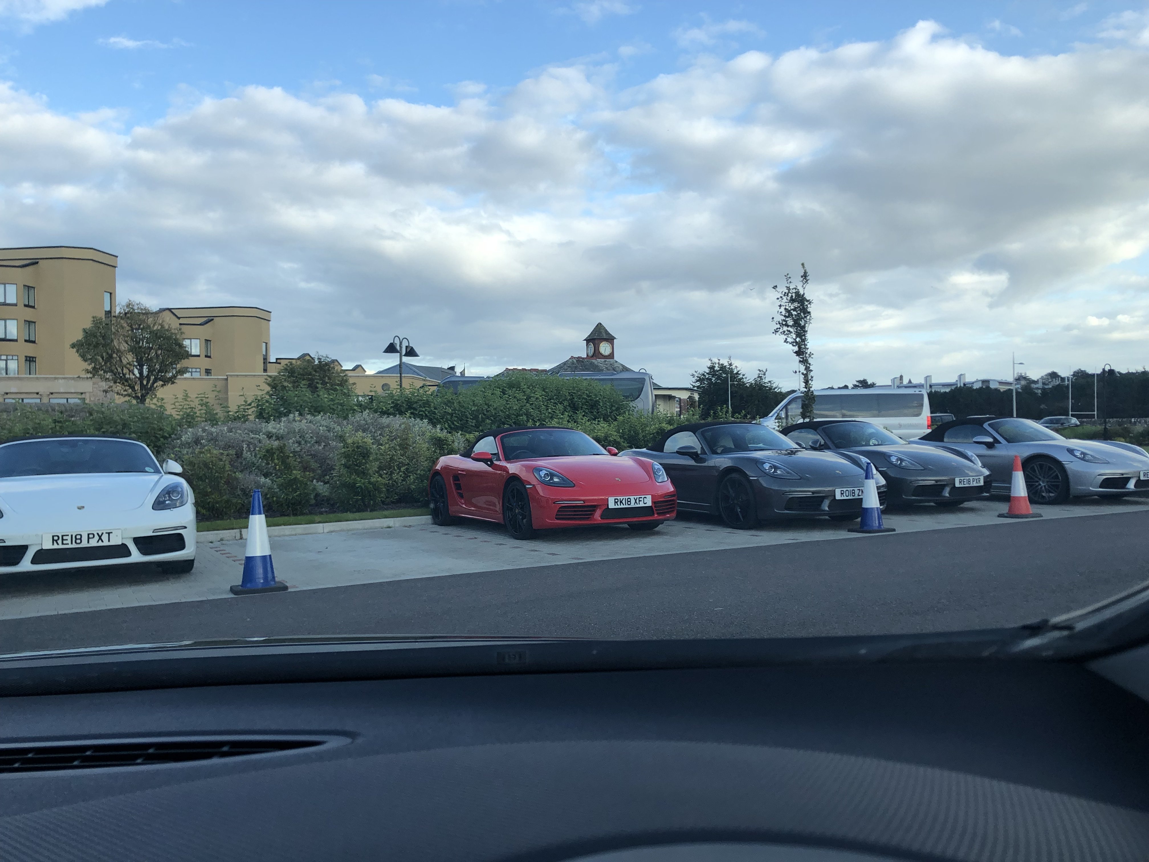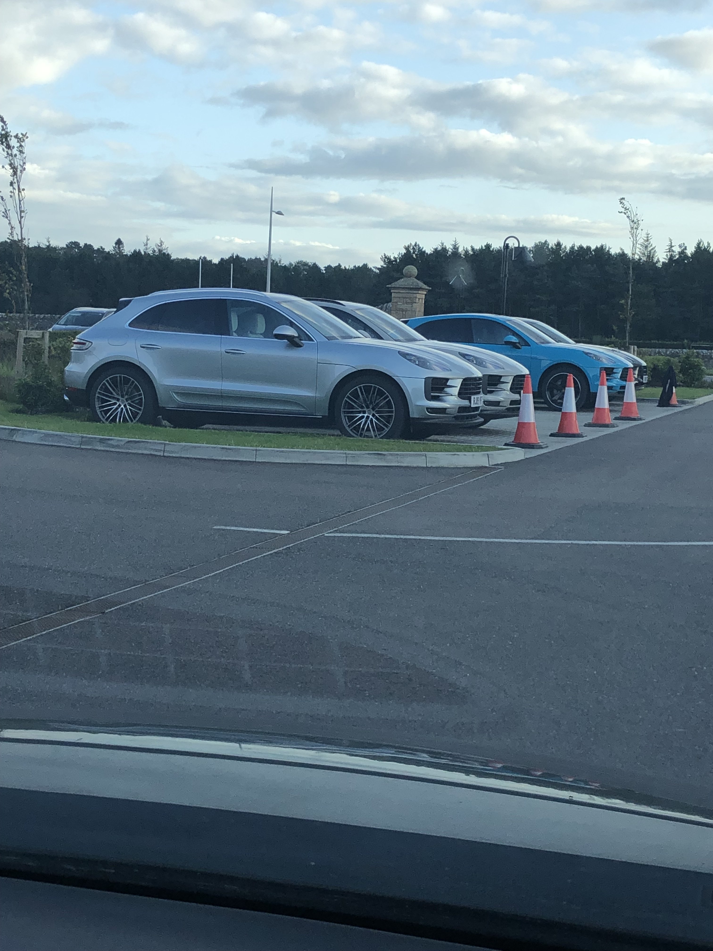 Porsche held a customer invite event at my daughters work yesterday, a couple of pictures for your delight, she did try one but don’t know which, Ferrari’s last month, Porsche this, what next.