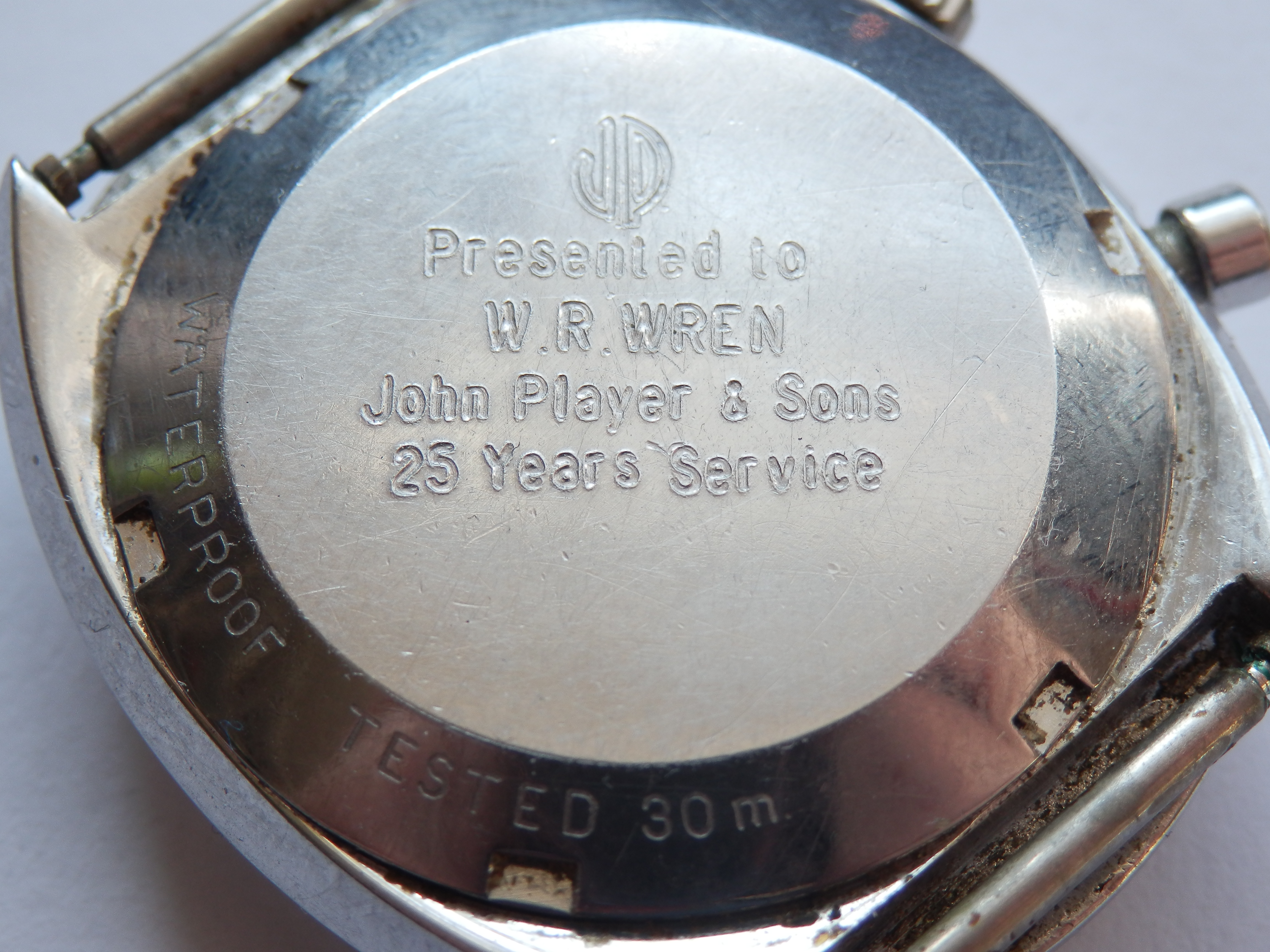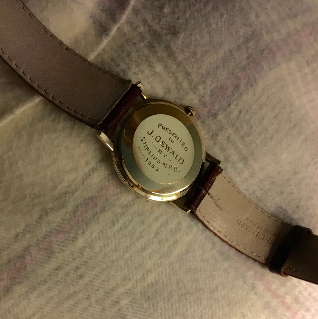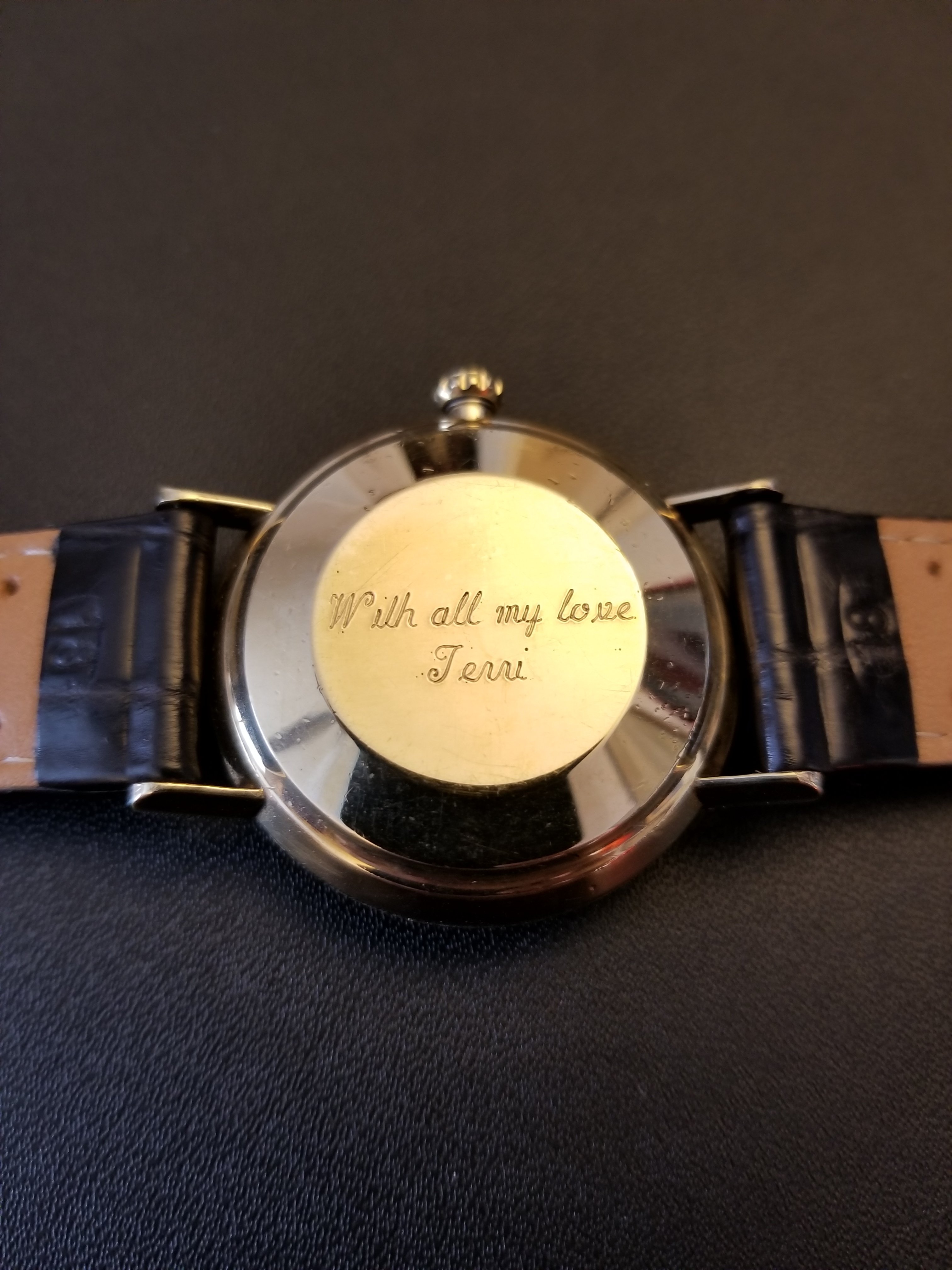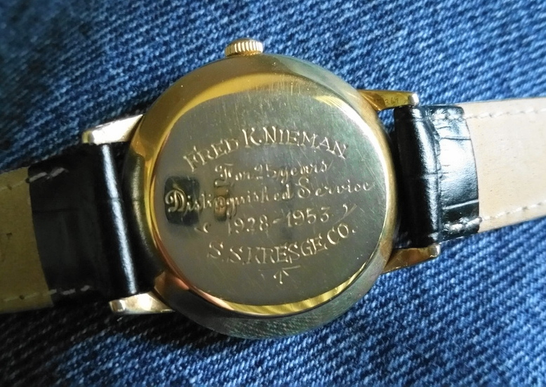 I have this on a virtually unidentifiable Mohawk Watch Co. watch. It was from an aunt I never met to an uncle I never met for Christmas