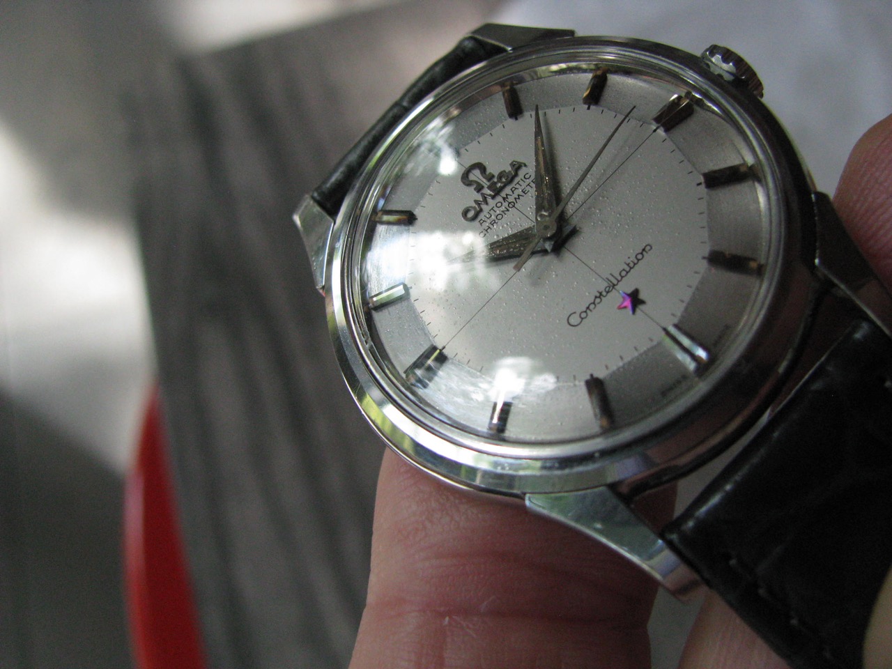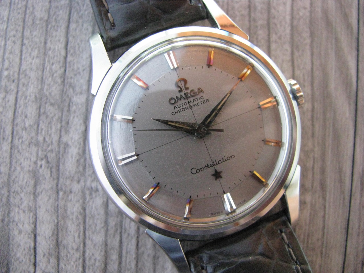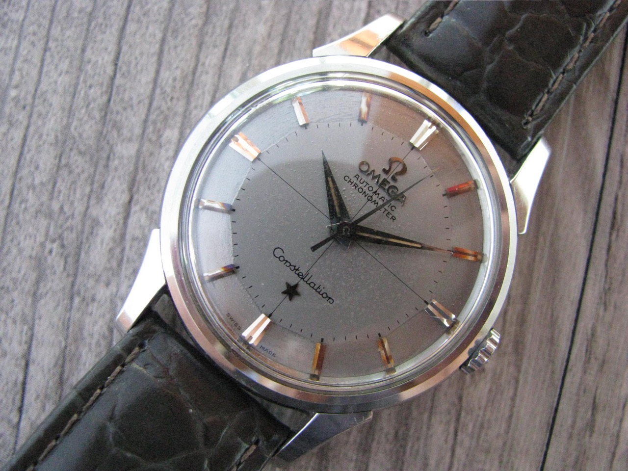 ·Here's a classic 1960 Omega Constellation with one of the most arresting tropical pie-pan dials I've seen.