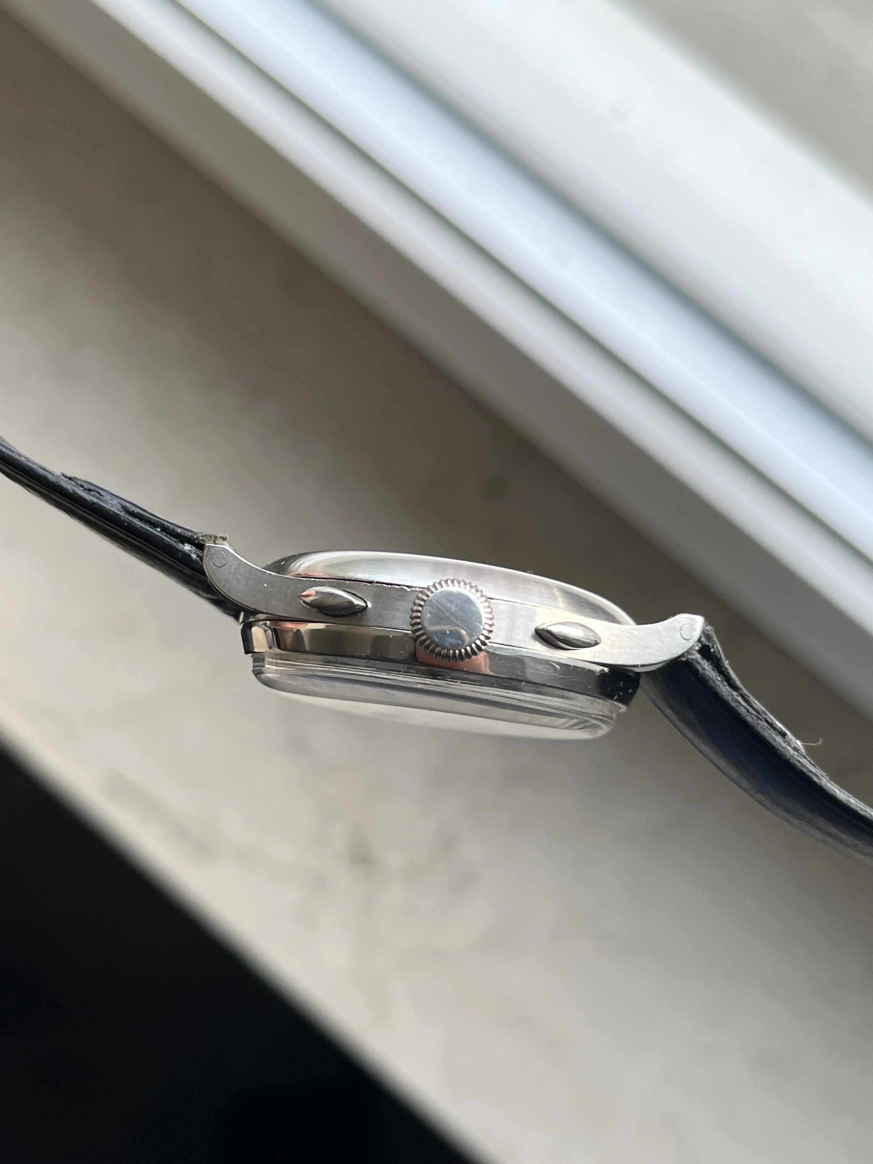 CASE: The three-body, stainless steel case measures 36mm in diameter and stands 13.5mm tall. It appears to be unmolested as it retains, thick downturned lugs and a strong profile with light signs of wear consistent with its age.