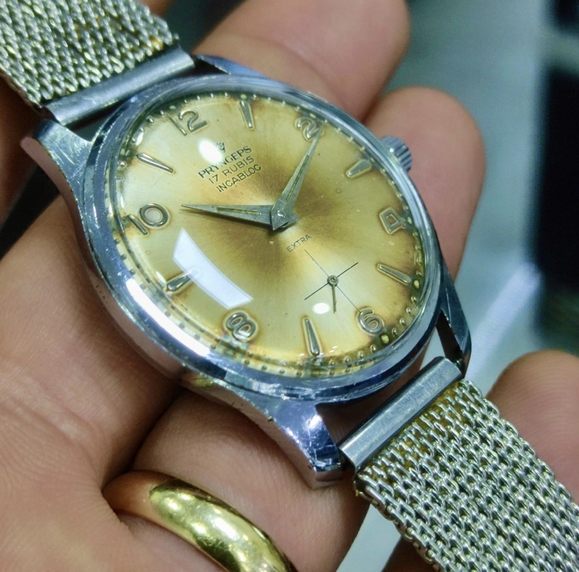 There seems to be precious little about Pryngeps online apart from that they were based in Milan and started out in 1956. I stumbled across this watch whilst casually browsing eBay, and was immediately taken by the dial patina. Based around the banning of radium dates early 60’s I am presuming this to be a late 50’s model. It is running a sturdy looking AS1130 movement.